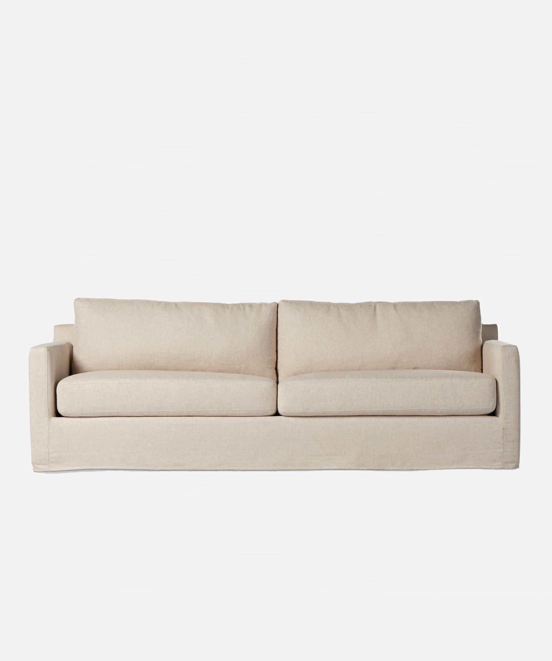 The Altheon Slipcover Sofa combines timeless design with modern practicality. Handcrafted by American artisans using domestically sourced materials, this sofa features refined track arms and sumptuous feather-filled cushions for exceptional comfort. The removable slipcover offers versatility and easy maintenance, simply dry clean as needed. Wrapped in PFAS-free performance fabric engineered to resist spills, stains, and everyday wear, this piece delivers enduring elegance and durability.