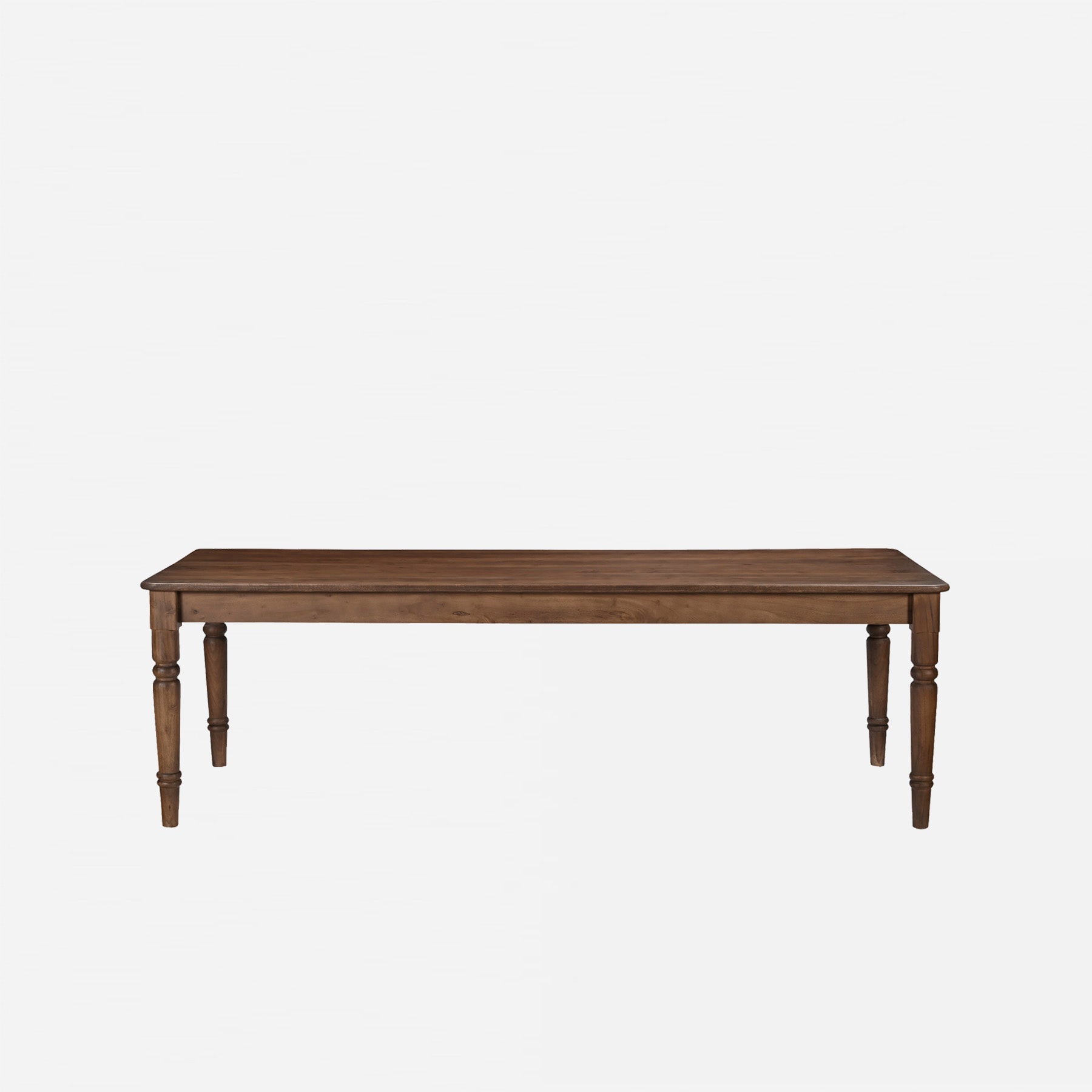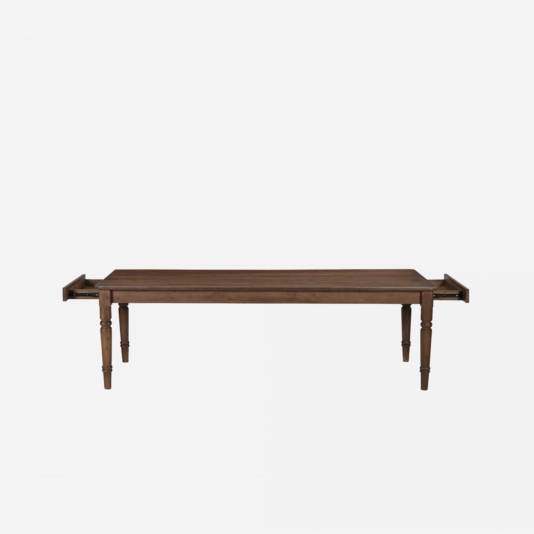 Elevate your dining experience with the Arabella Dining Table. With beautifully turned legs and intricate carvings, this table exudes elegance and charm. Its mid-tone brown finish seamlessly fits into traditional and transitional homes. Plus, the two horizontal drawers and overhanging tabletop add convenience and functionality. Timeless and luxurious, it's the perfect centerpiece for any dining room.