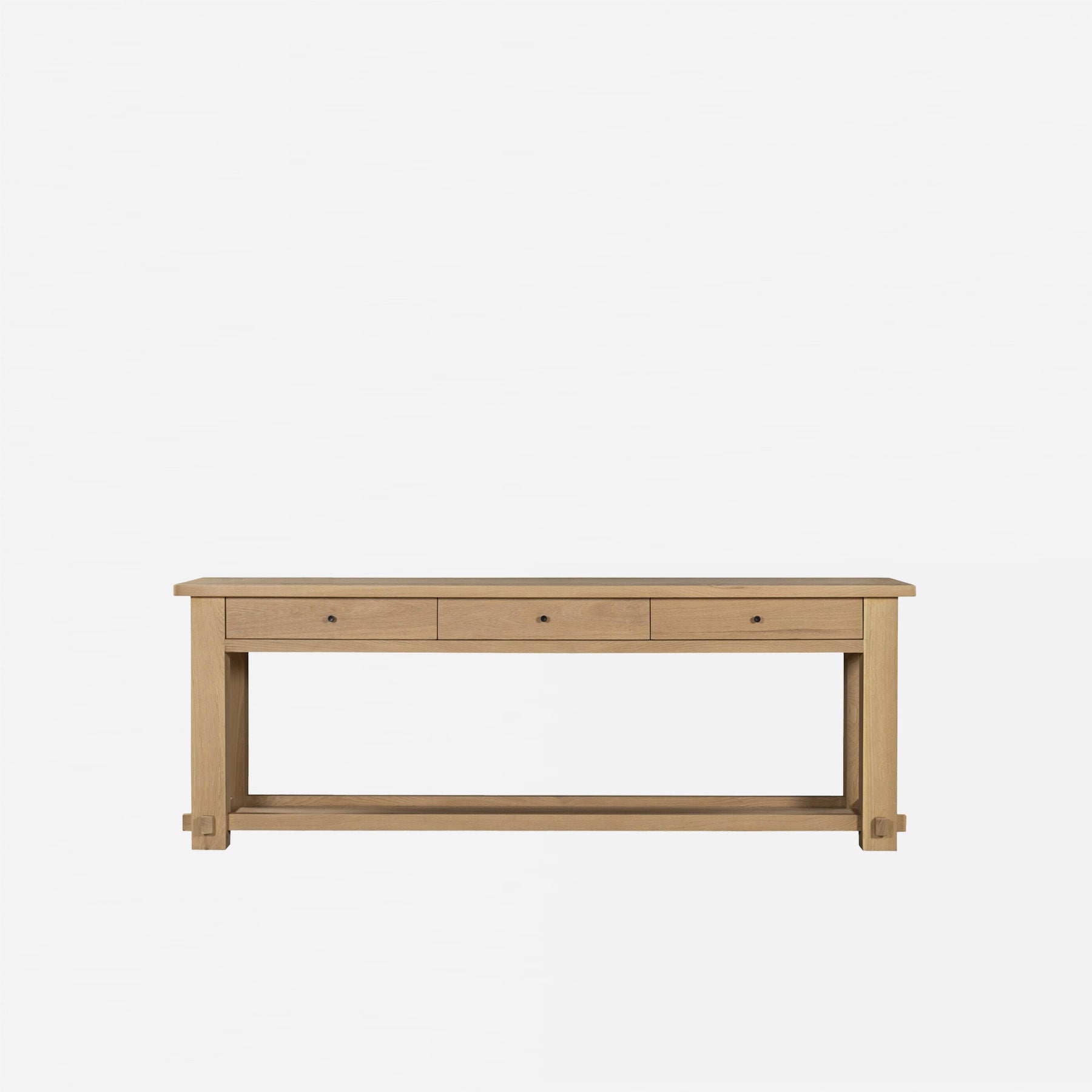 The Belmont Console Table proves that simplicity lets the details shine. Softly rounded corners and exposed joinery highlight its construction, while three shelves add function without clutter. Finished in natural oak, it’s smooth, sturdy, and makes a quiet statement in any space.