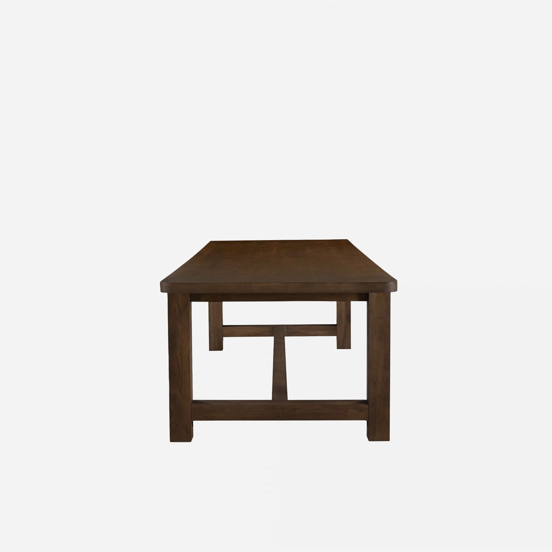 • Thick legs and a squared stretcher give the table presence and stability