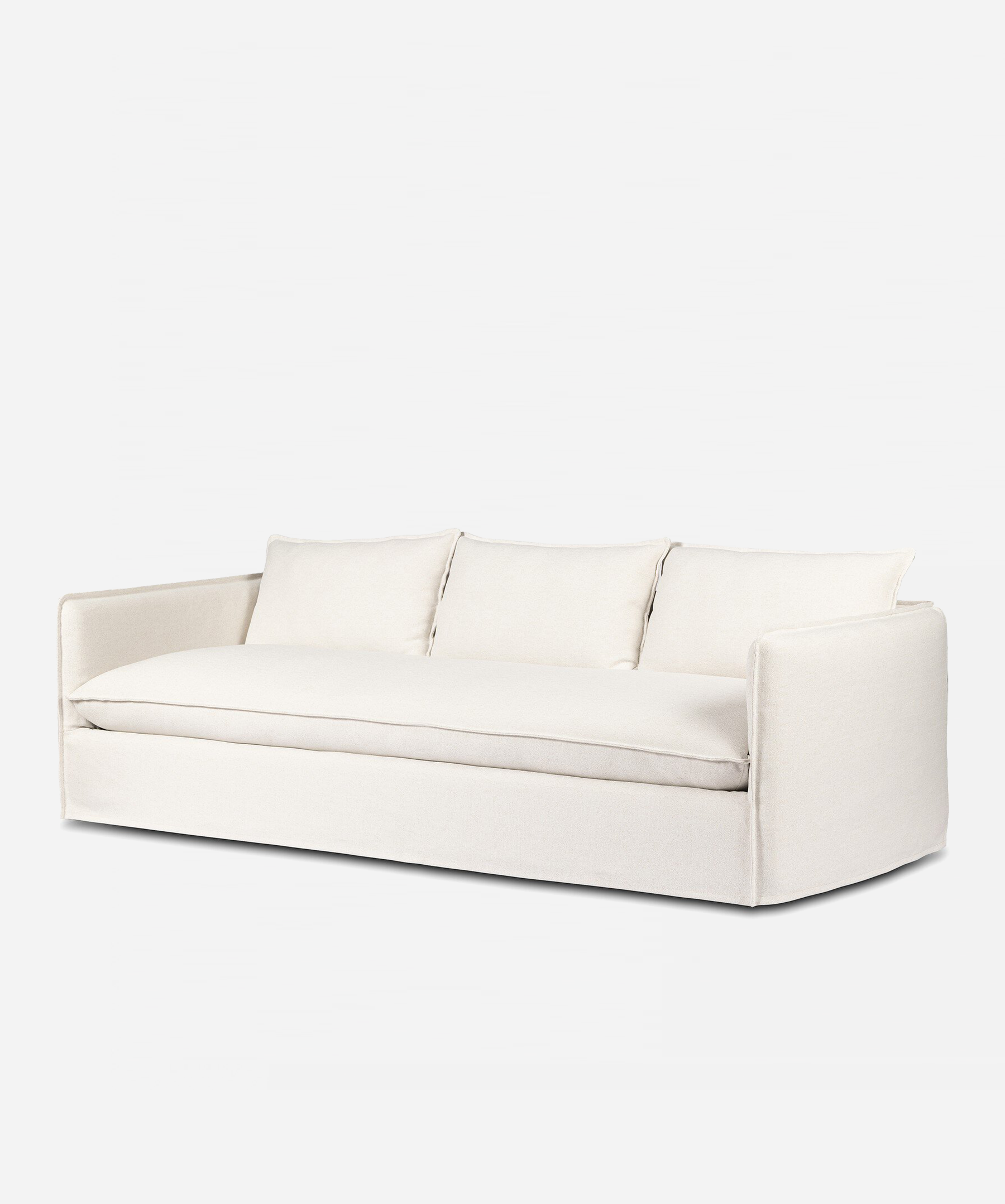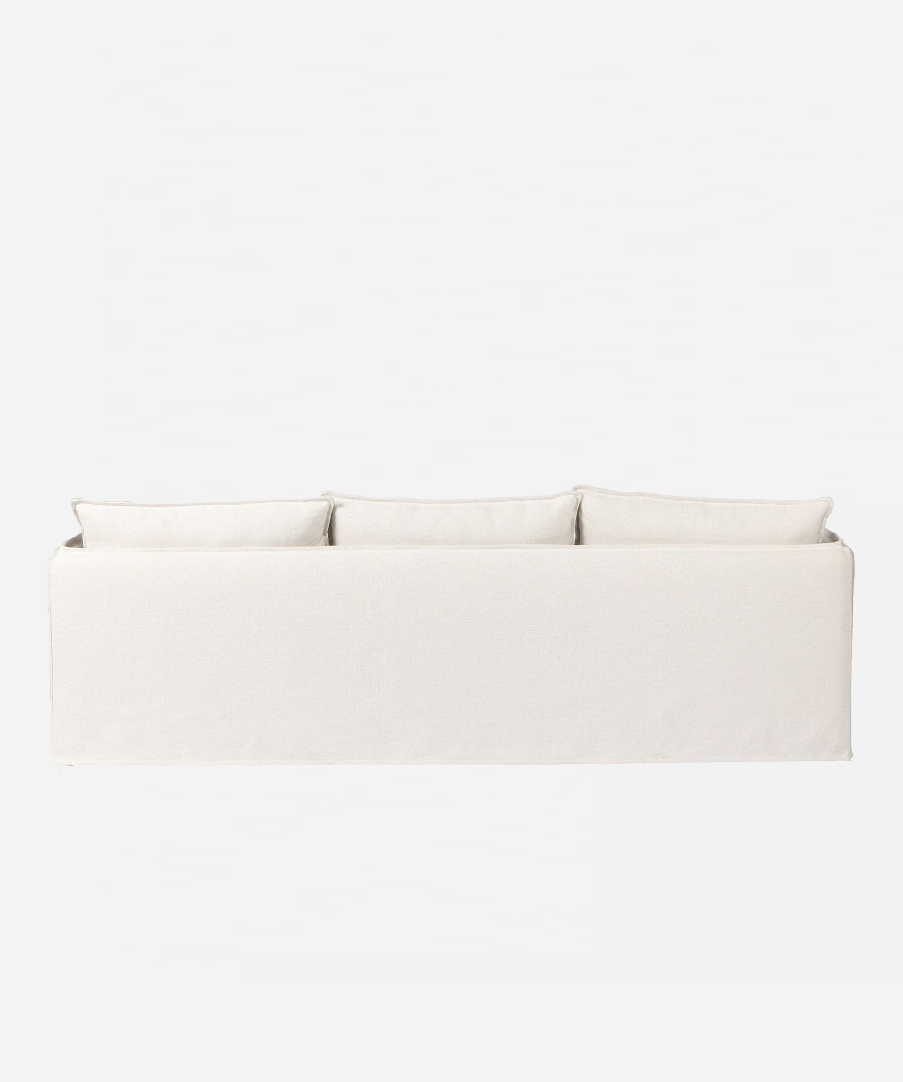 The Brynith Outdoor Sofa reimagines indoor elegance for outdoor living. This contemporary piece combines a generous bench seat with loose back cushions, each dressed in removable, washable slipcovers finished with refined flange detailing. Crafted from luxurious Italian upholstery using zero-waste production methods, the fabric delivers exceptional durability while resisting sun damage, stains, mold, and wear. Designed for relaxed sophistication, it seamlessly bridges the gap between interior comfort and exterior resilience. For optimal longevity, cover or store indoors during severe weather and extended periods of non-use.