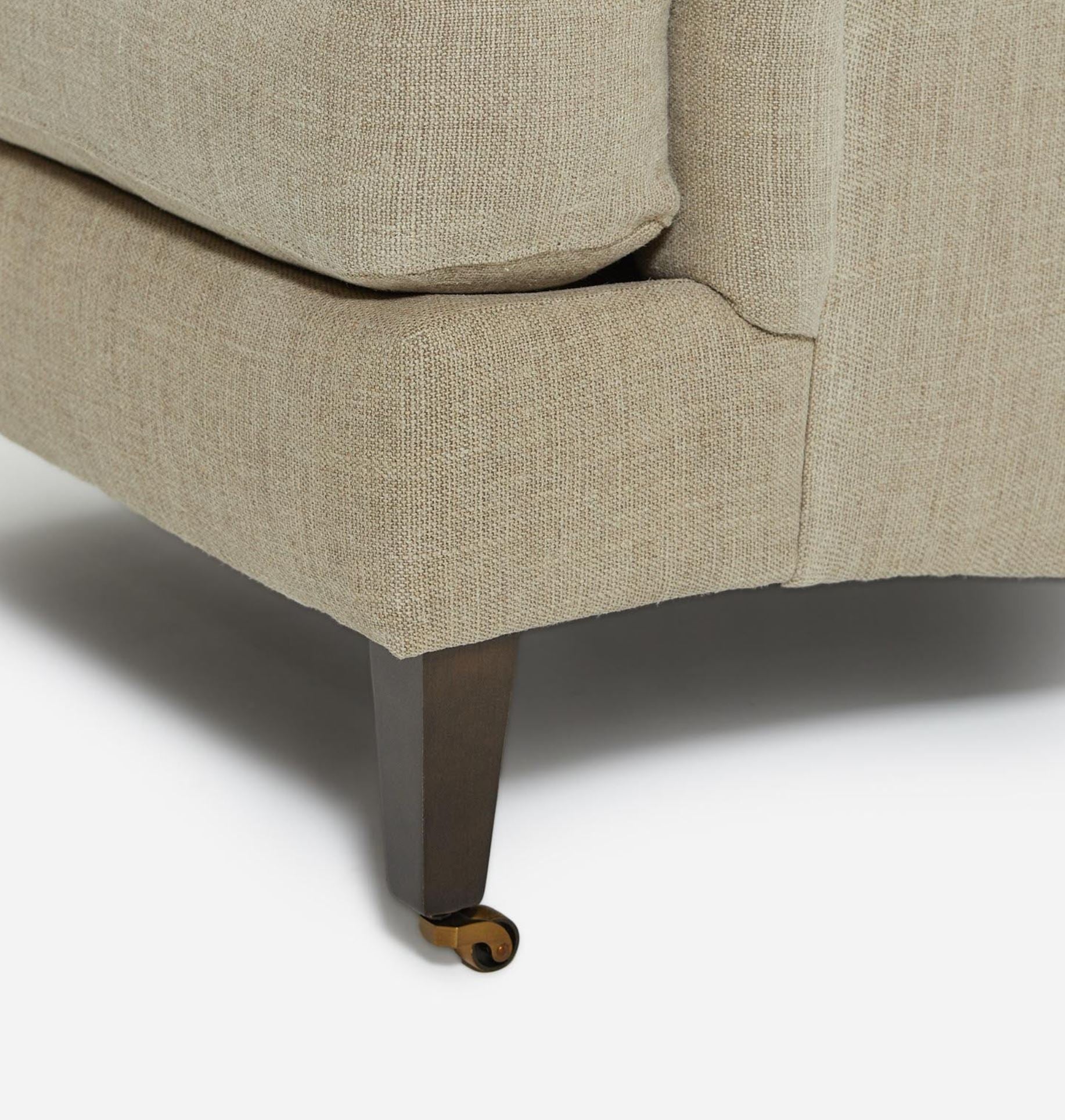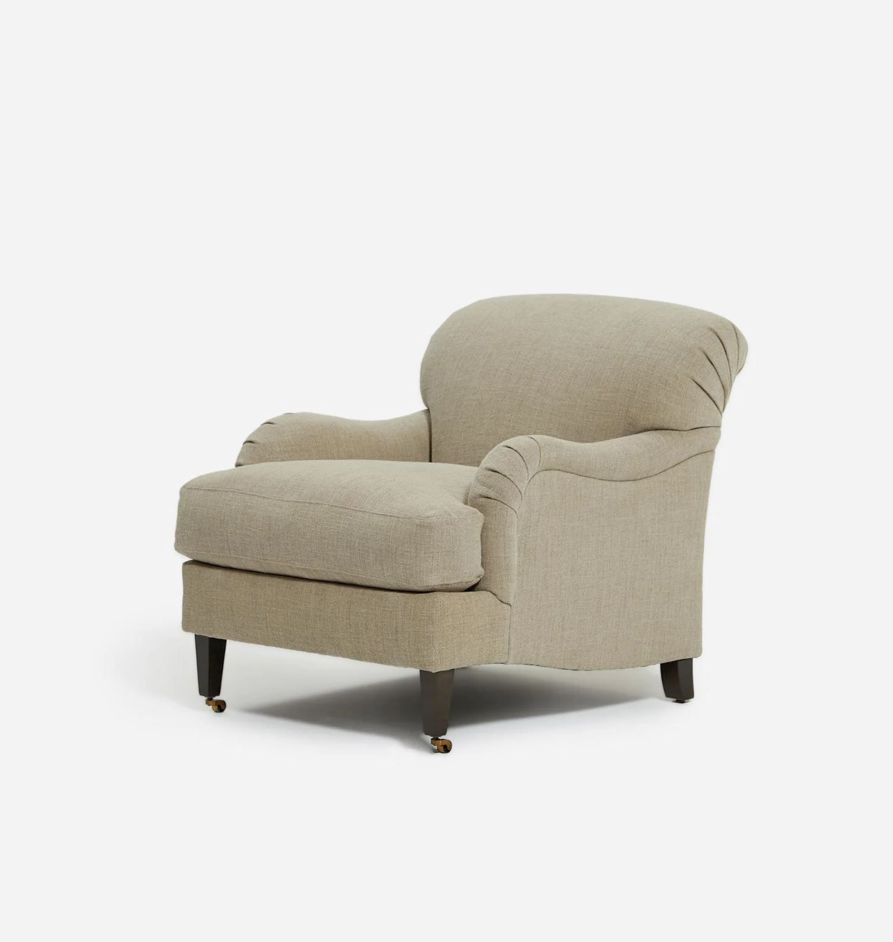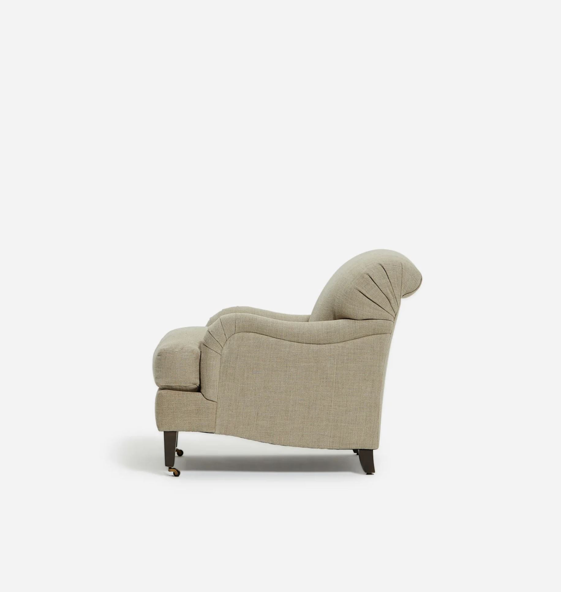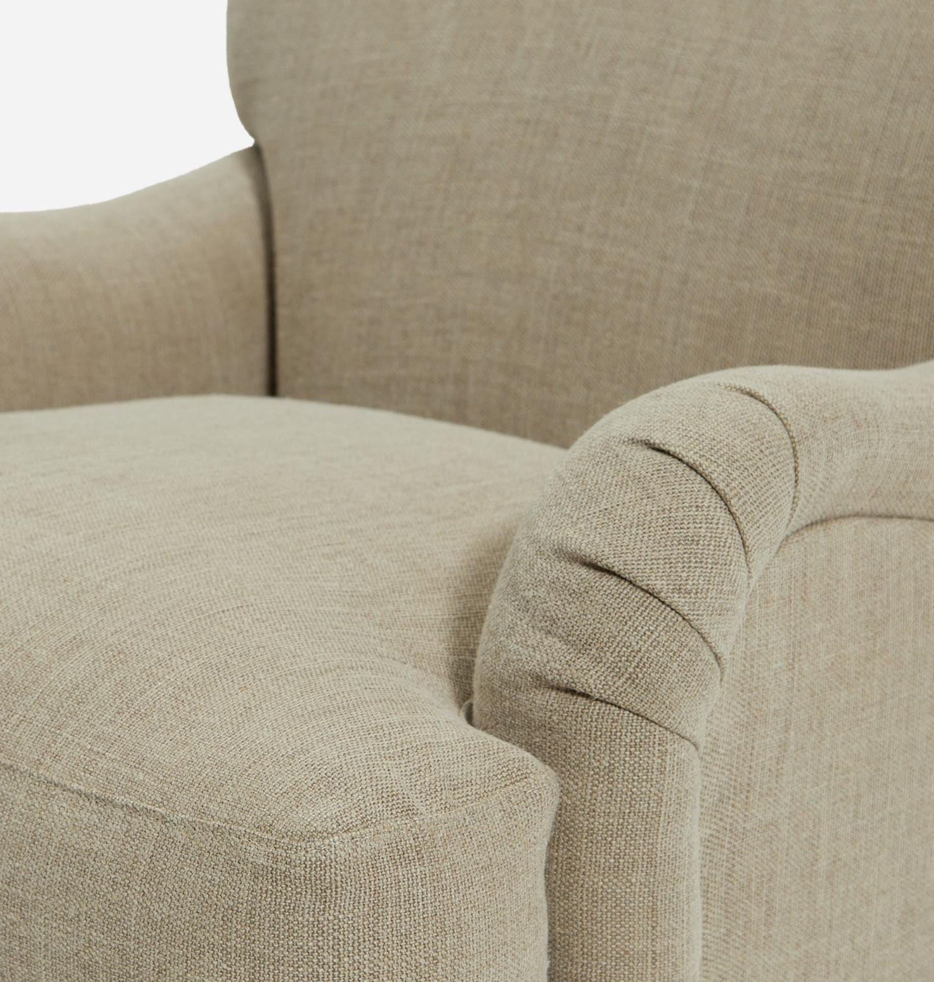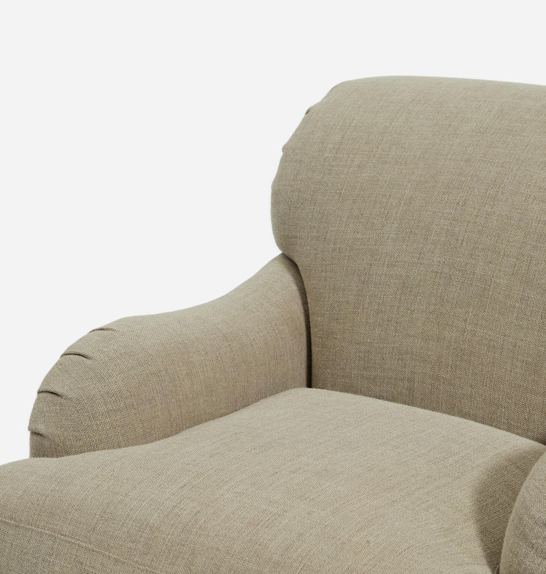 Meet the Calyx Lounge Chair, a refined balance of style and comfort. Featuring vintage-inspired rolled arms, generous cushioning, and graceful lines, it is designed to bring both charm and ease to your home. Thoughtful details like tailored upholstery and wooden legs lend warmth and timeless elegance, making the Calyx a classic statement piece for any sophisticated living space.
