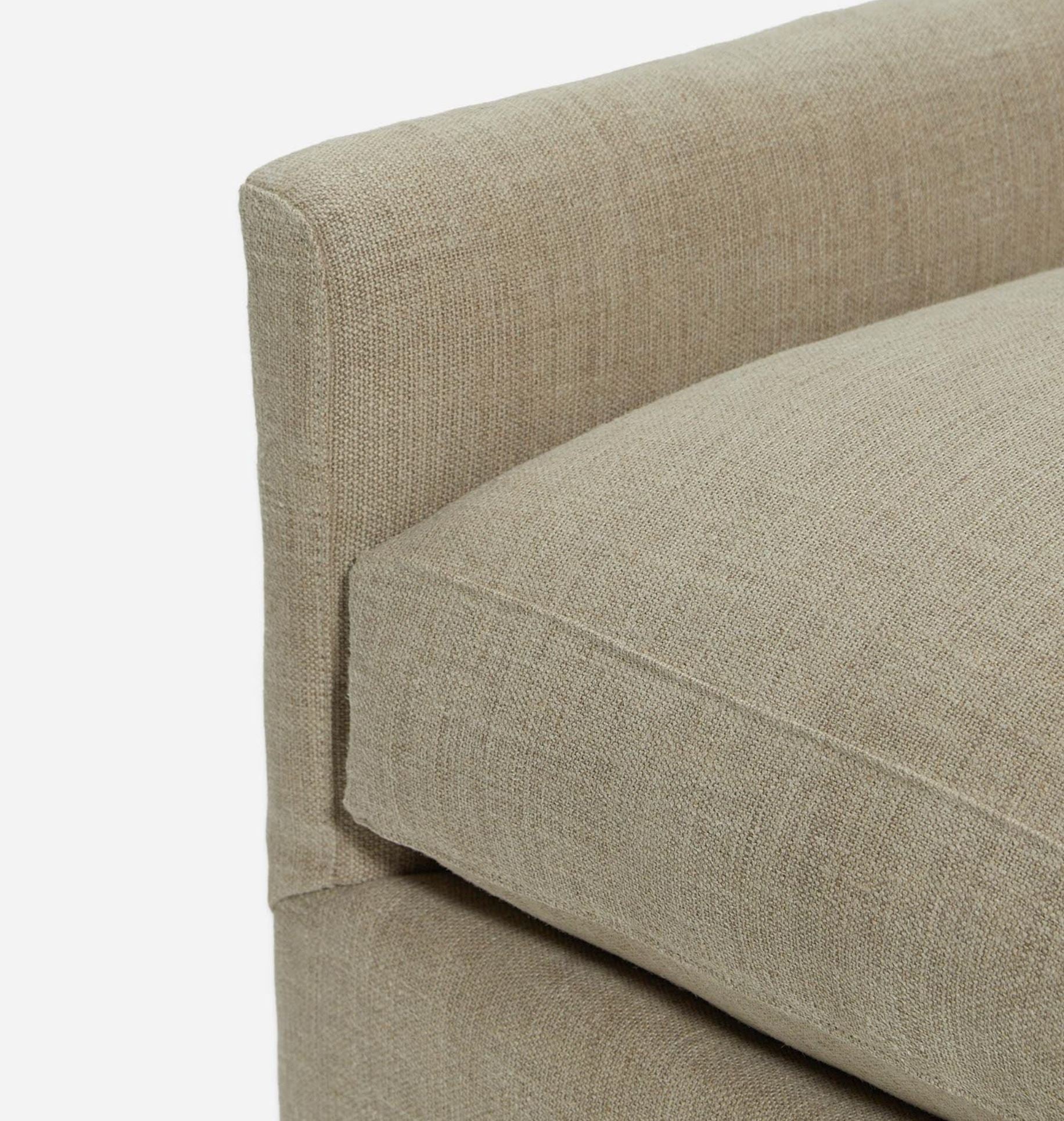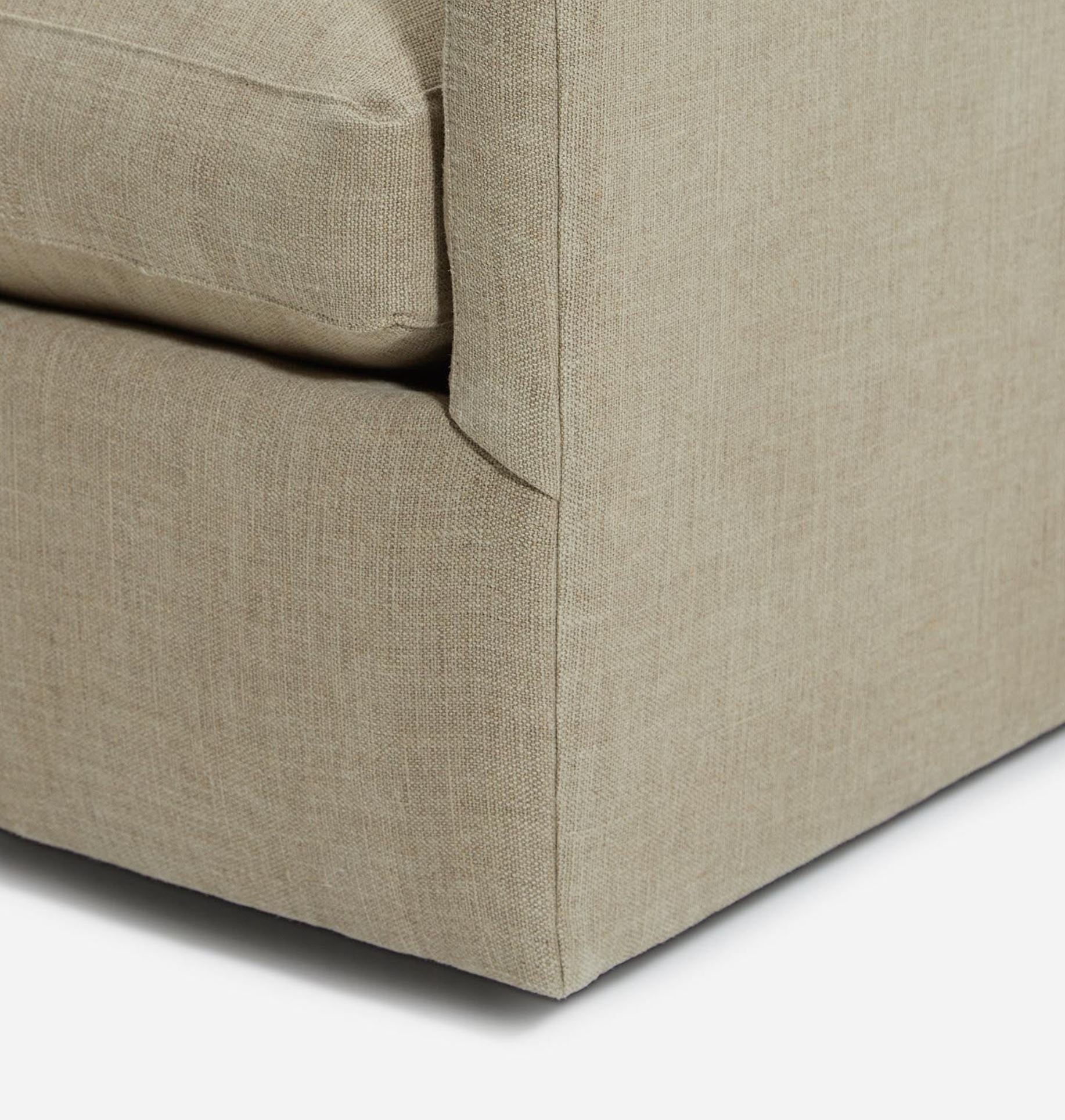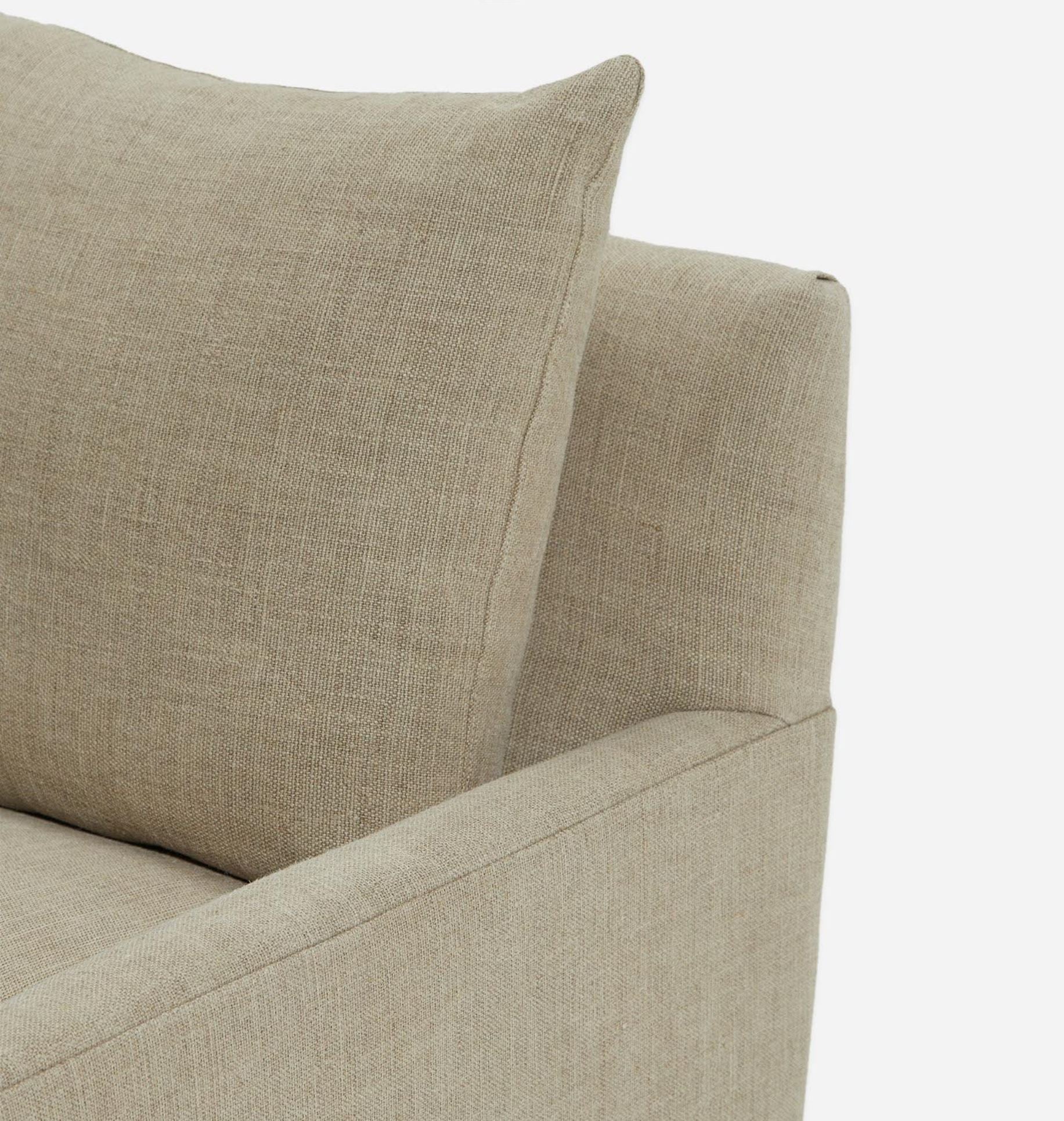 Experience elevated comfort with the Camille Swivel Glider Chair and Ottoman. Upholstered in 100% linen and designed with timeless appeal, the chair combines effortless style with practical function, featuring a smooth swiveling and gliding base. Ideal for unwinding, this versatile pair enhances any refined living space. Please note: chair and ottoman are sold separately.
