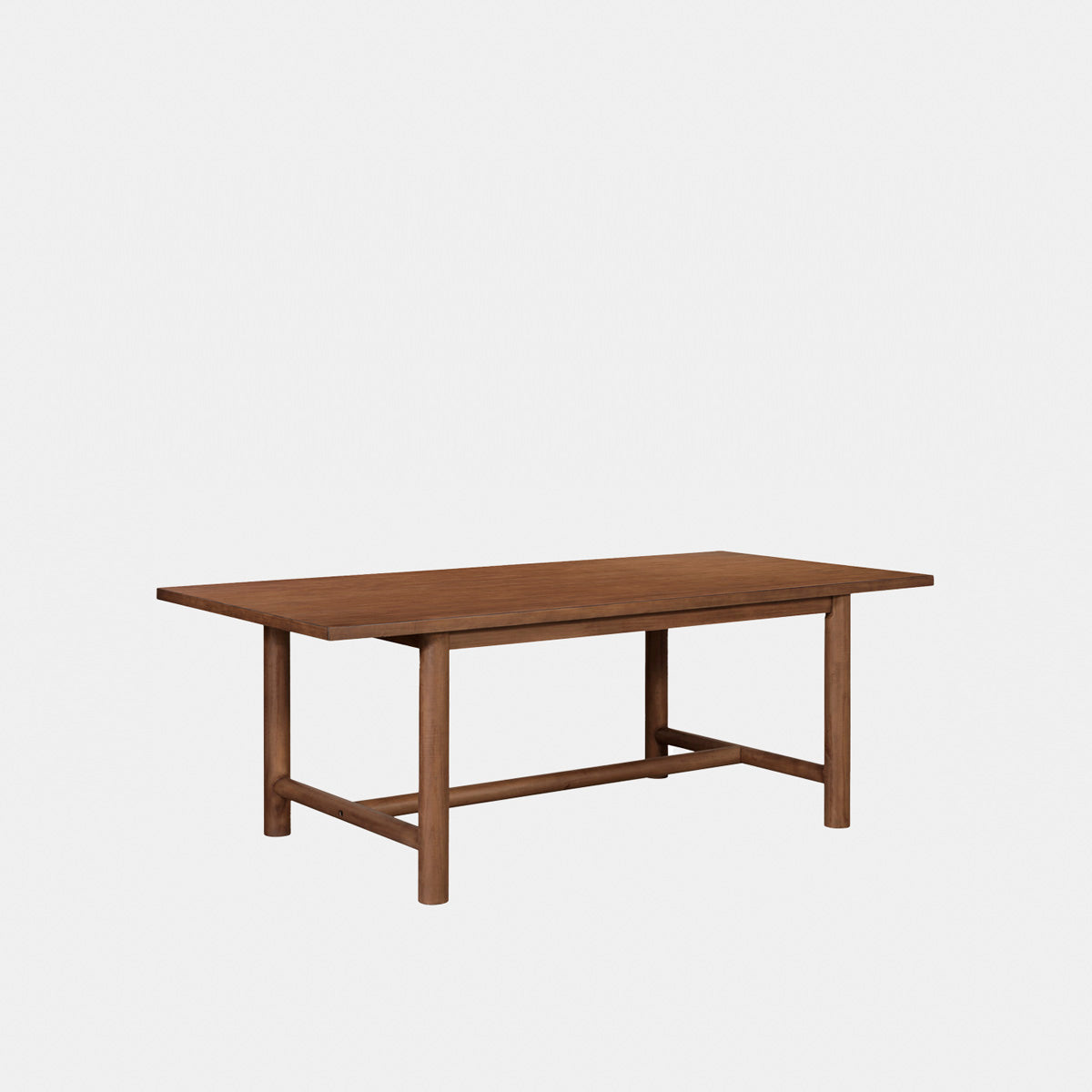 Elevate your dining experience with the Cassian Dining Table. Its sleek, straight-edge tabletop exudes modern elegance while its four cylindrical legs add a touch of visual lightness. Made of pine with a rich, dark brown finish, this table seamlessly combines timeless charm with rustic appeal.