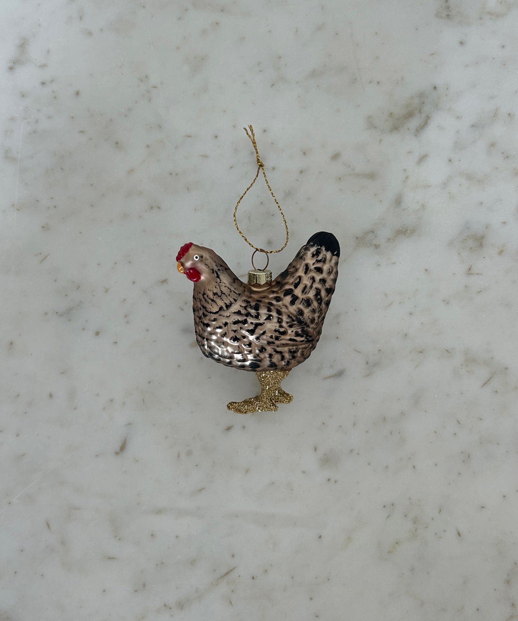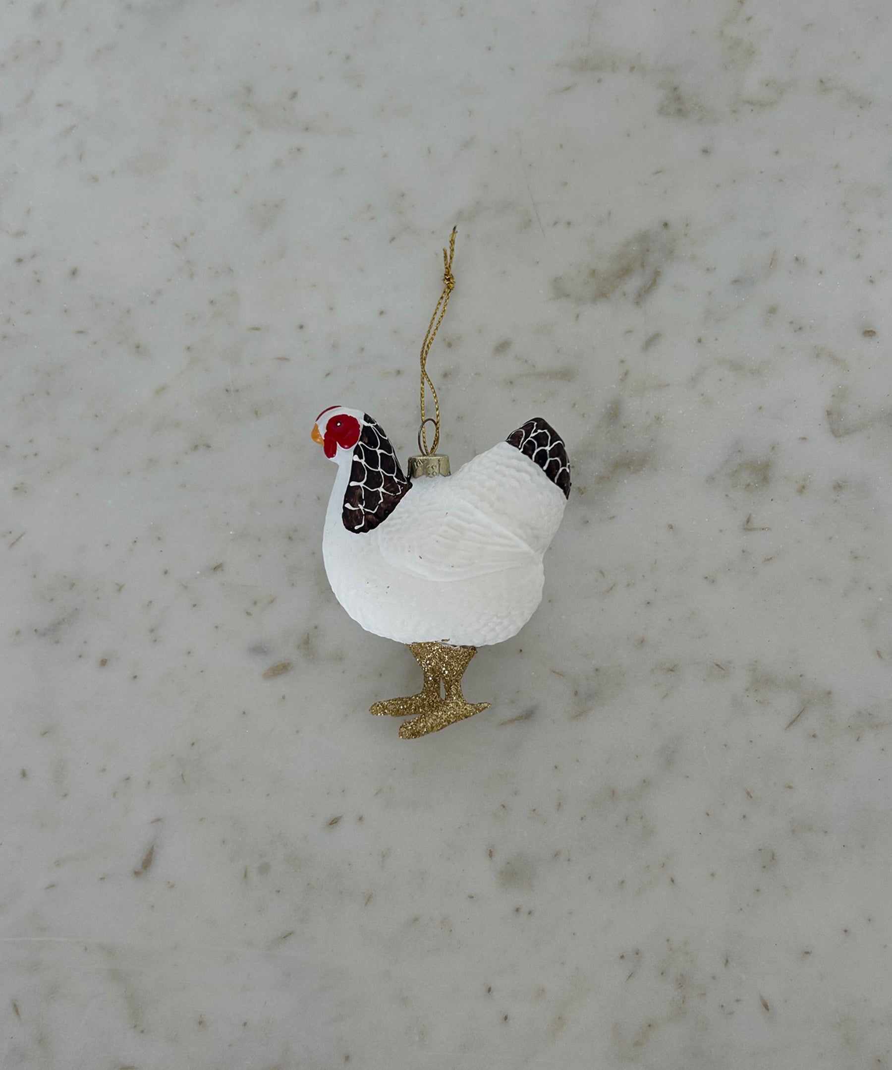 This handmade glass chicken ornament reflects authentic Cayman life. Its delicate design and refined detailing add a playful touch to your holiday décor.