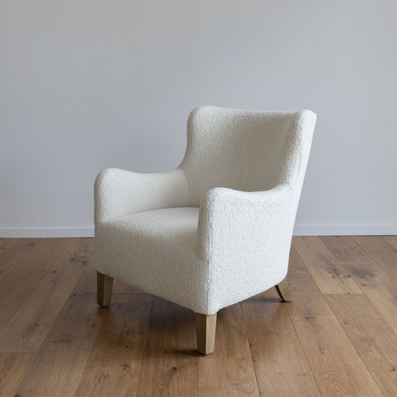 A textural take on a classic accent chair, the Cloud Chair is crafted in a softly curved design featuring our Bone Boucle fabric. This chair is like a teddy bear hug. With its elevated design and natural wood legs, the Cloud Chair is a stunning highlight for any room blending form and function so beautifully. Handcrafted using the highest quality materials. Pair it with a matching pouf to serve as a footrest.