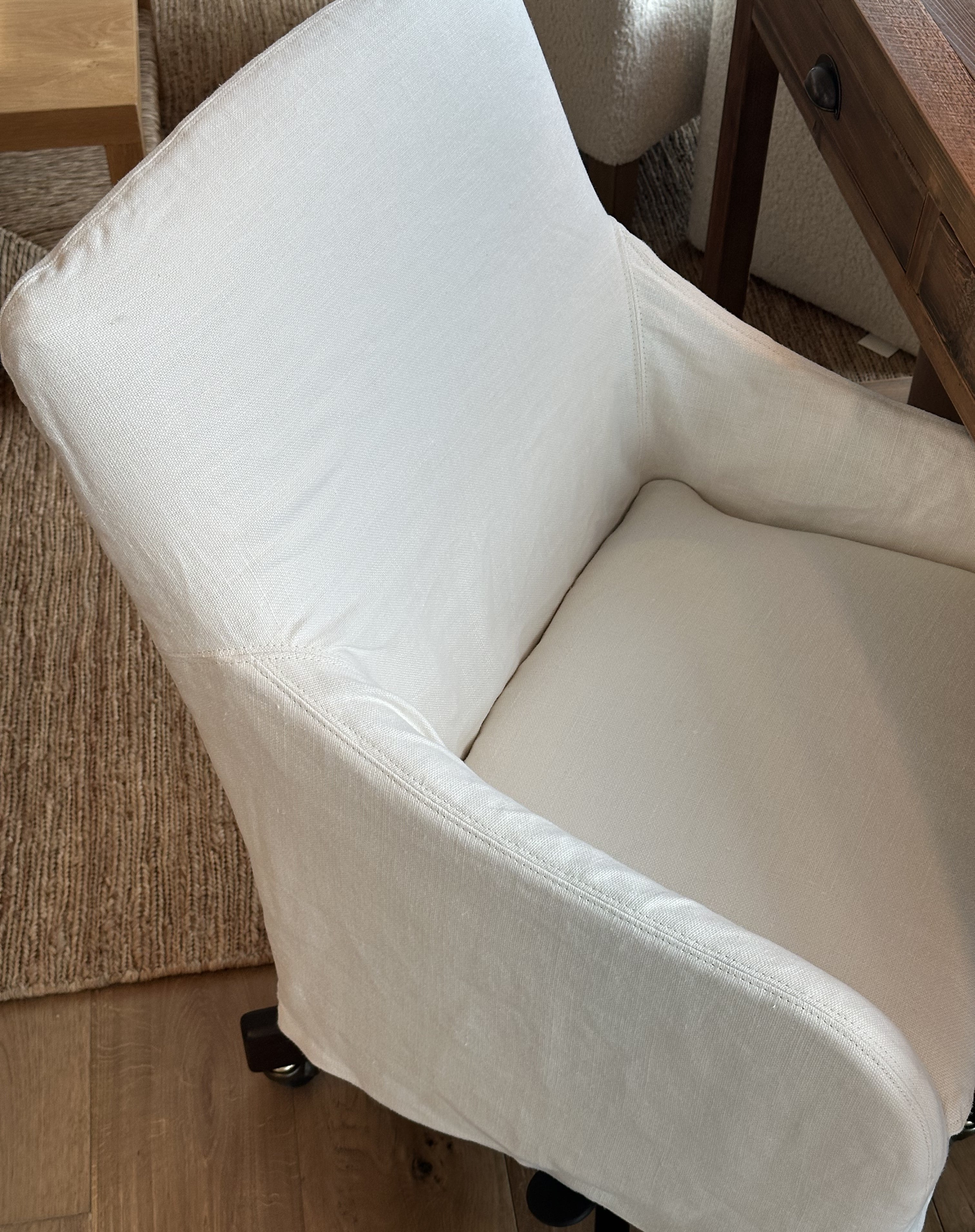 Introducing the Coastline Desk Chair, a perfect combination of style and comfort. This desk chair comes with a slipcover, giving you the option to easily remove and clean. With its chic design and laid-back look, you'll experience improved posture and increased productivity.