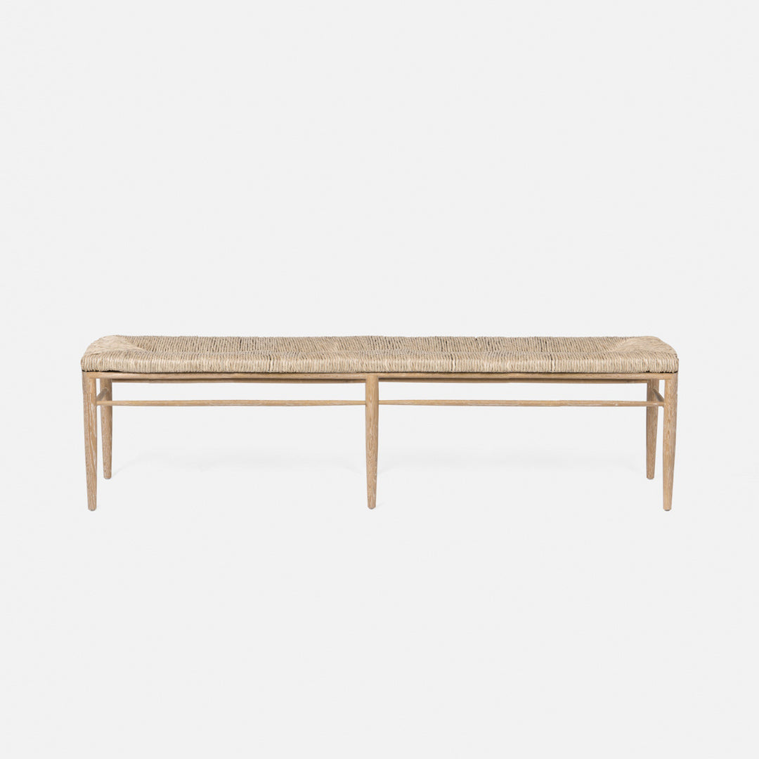 Modern meets classic in the Wynne, a bench woven in twisted natural rush fiber. The frame, slender yet sturdy, is made of cerused white oak veneer that will fit into any palette. Whether placed in your entryway to provide a welcoming area, or as a chic addition to your dining table setup, this bench is as versatile as it is stylish.