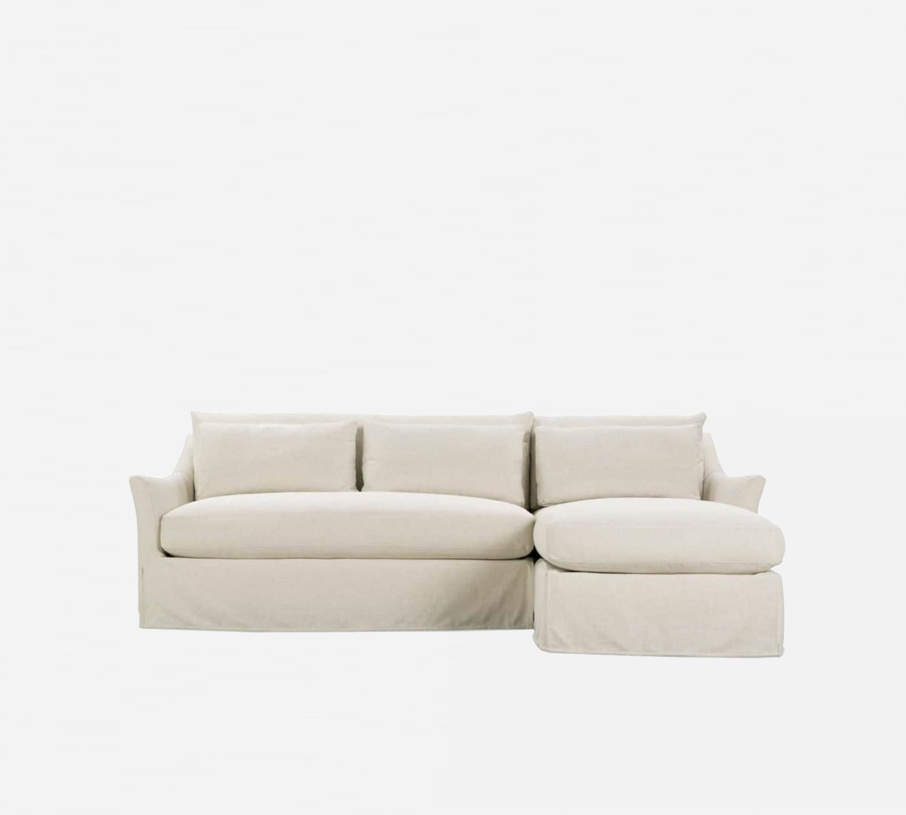 The Coralyn Slipcovered Sectional brings refined luxury to your living space with its clean lines and sustainably crafted slipcover, made from recycled and organic materials. Designed as a tasteful statement piece, it serves as an elegant centerpiece for any living room.