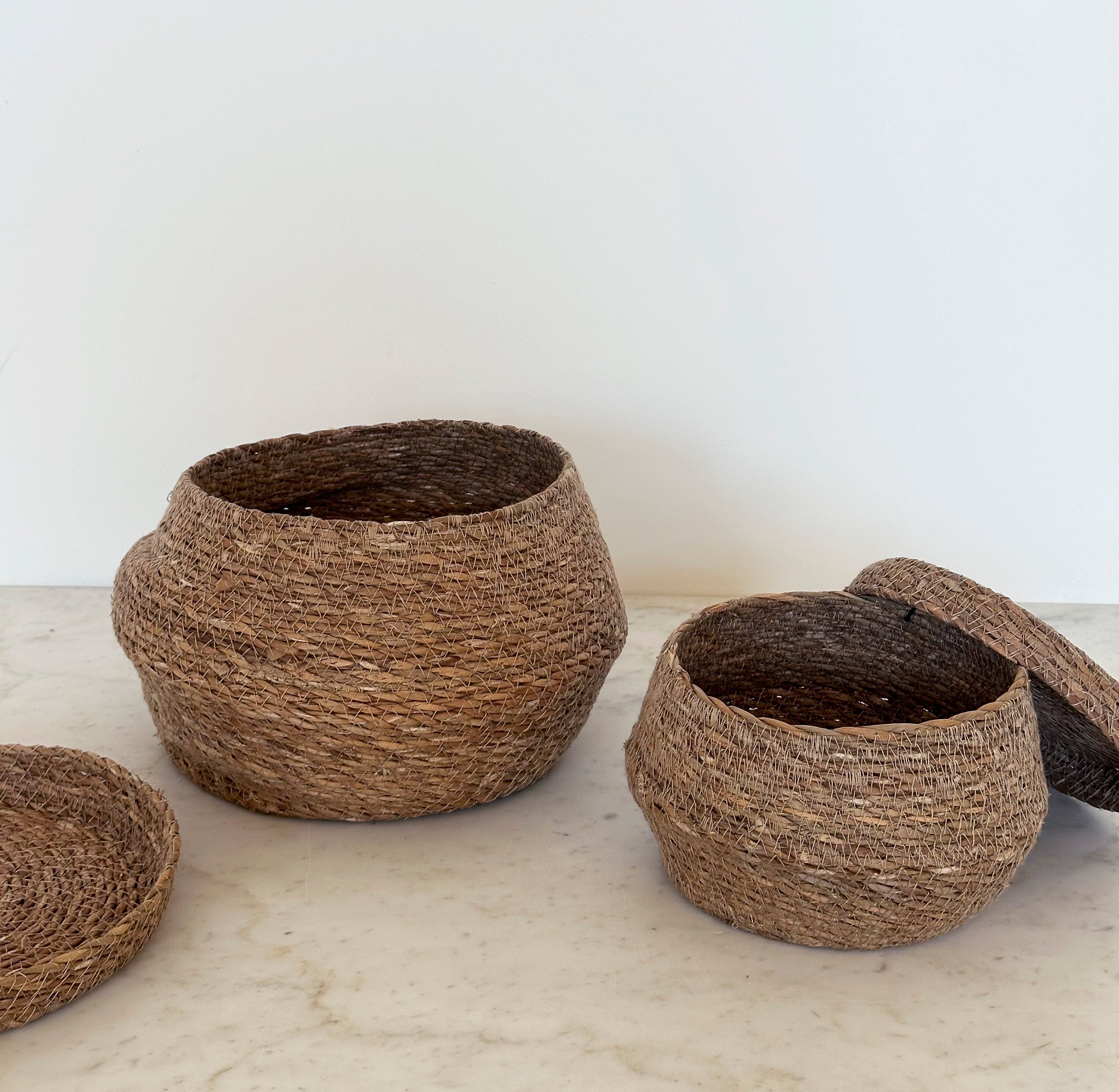 Elevate your organization with the Dorian Woven Basket, crafted from natural hand-woven seagrass. Its sturdy lid offers discreet storage, combining refined design with practical function. Perfect for adding a touch of timeless elegance to any room while keeping essentials neatly tucked away.