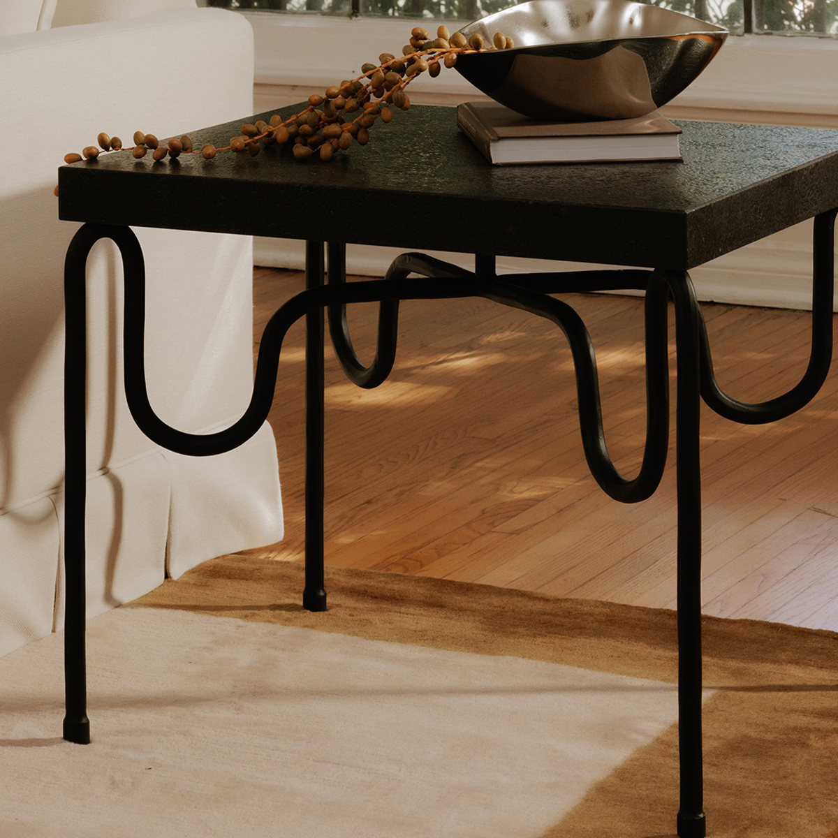 Elevate your space with the Eloise Side Table. Inspired by the rustic elegance of Tuscany, this piece features a durable, antiqued granite top and a curved wrought iron base reminiscent of Italian craftsmanship. Use as a side table or nightstand.