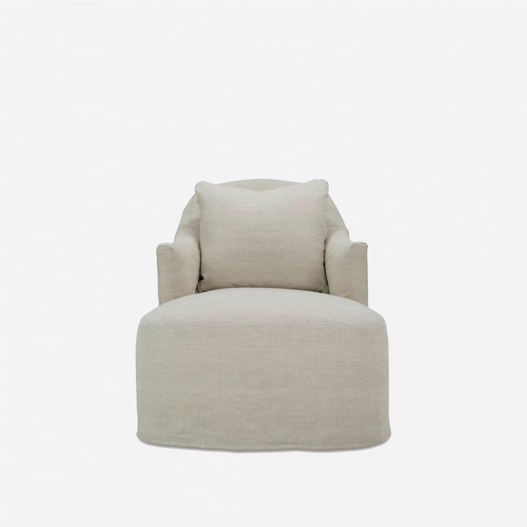 With its clean lines and tailored slipcover, the Esme Chaise strikes the perfect balance between relaxed elegance and comfort. A plush cushion and soft pillows create an inviting spot to stretch out and unwind.