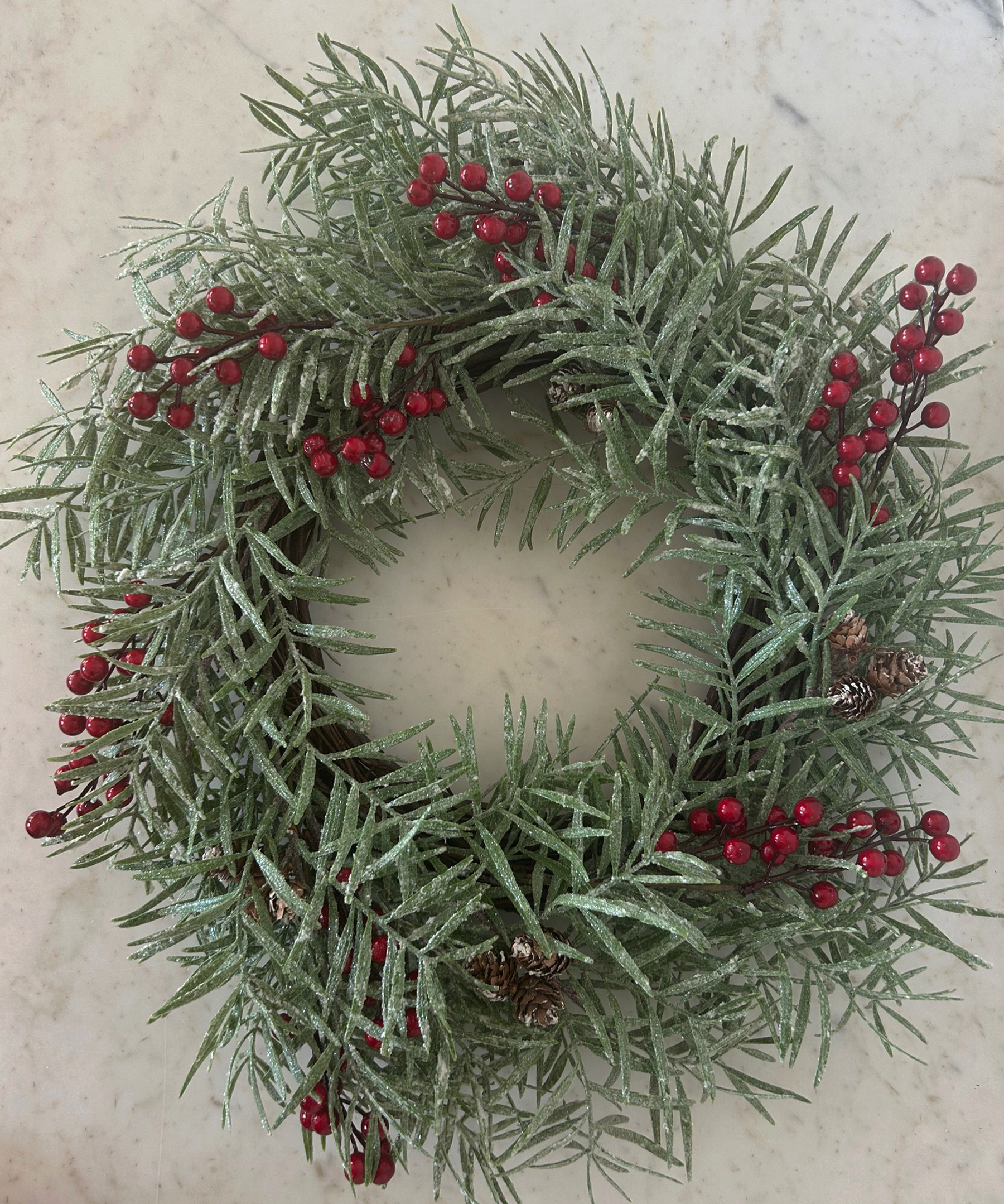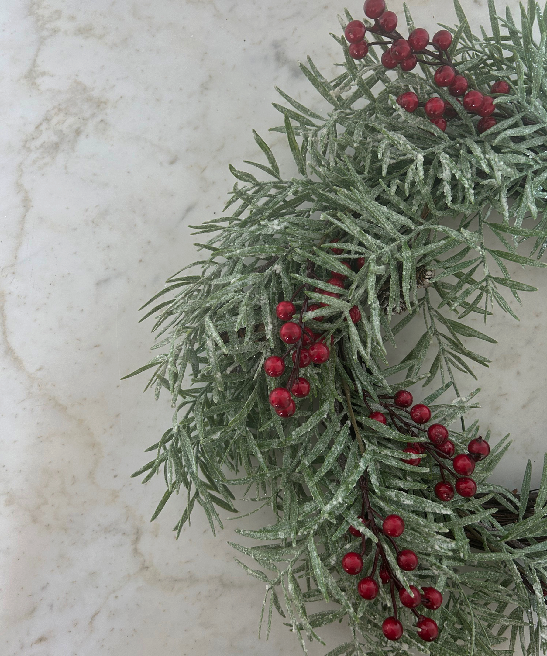Elevate your home decor with the sophisticated charm of this Berry Wreath. Expertly handcrafted from vibrant red berries, it offers a rich splash of color that enhances any front door or wall. The carefully arranged berries form a lush, full wreath designed to maintain its striking appearance for years.