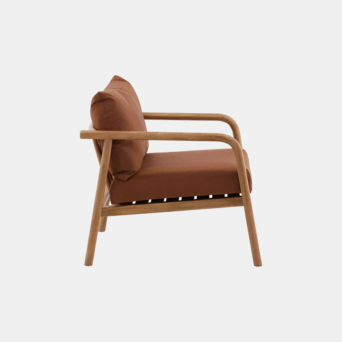 A sleek and sophisticated addition to your outdoor space. Crafted with performance fabric and teak, this chair brings both style and durability. Elevate your relaxation experience with this luxurious piece, built to withstand the elements while oozing elegance.