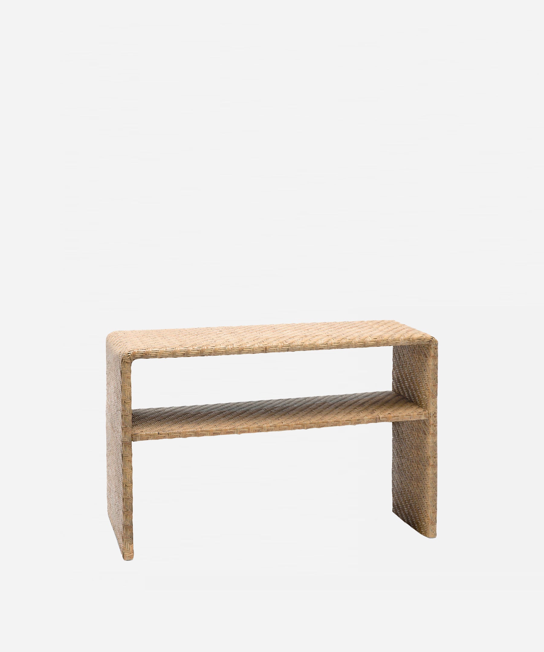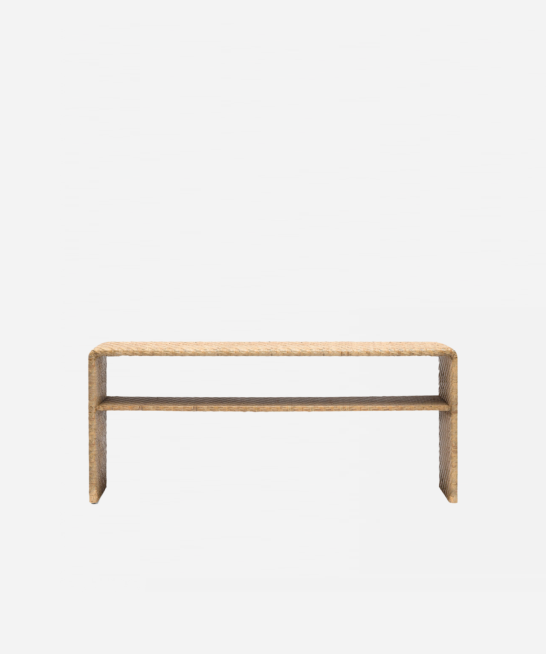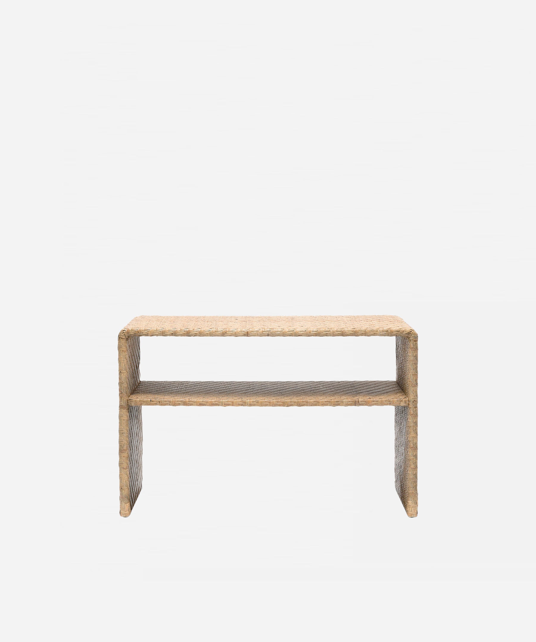 Elevate your living room’s coastal charm with the Fiora Console Table. Crafted from all-natural woven rattan, its smooth, rounded corners and elegant waterfall shape create a refined yet inviting silhouette. The spacious shelves offer generous storage and display options, blending effortless style with practical functionality for a sophisticated, beach-inspired atmosphere.