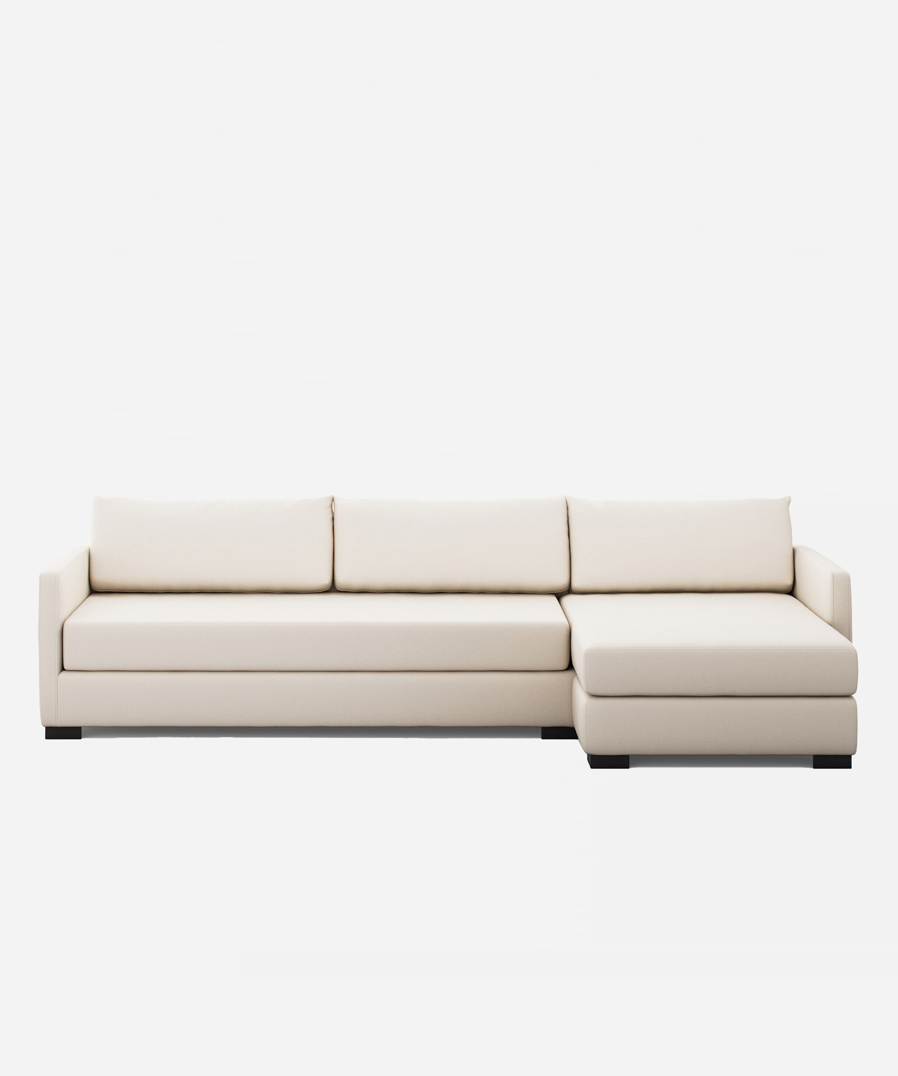 The Fletcher 2-Piece Sleeper Sectional combines understated elegance with practical design. This made-to-order sectional features a refined one-armed silhouette, sharp knife-edge pillows, and a coordinating chaise with concealed storage, ideal for modern living spaces seeking both style and function.