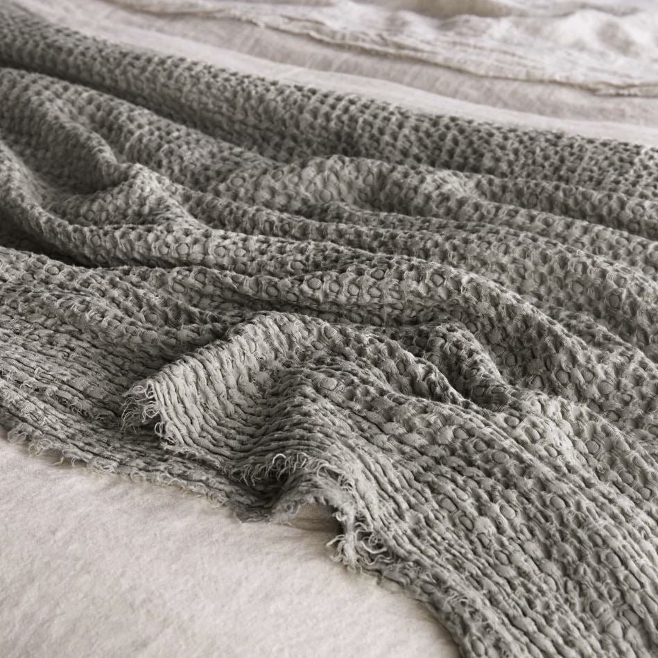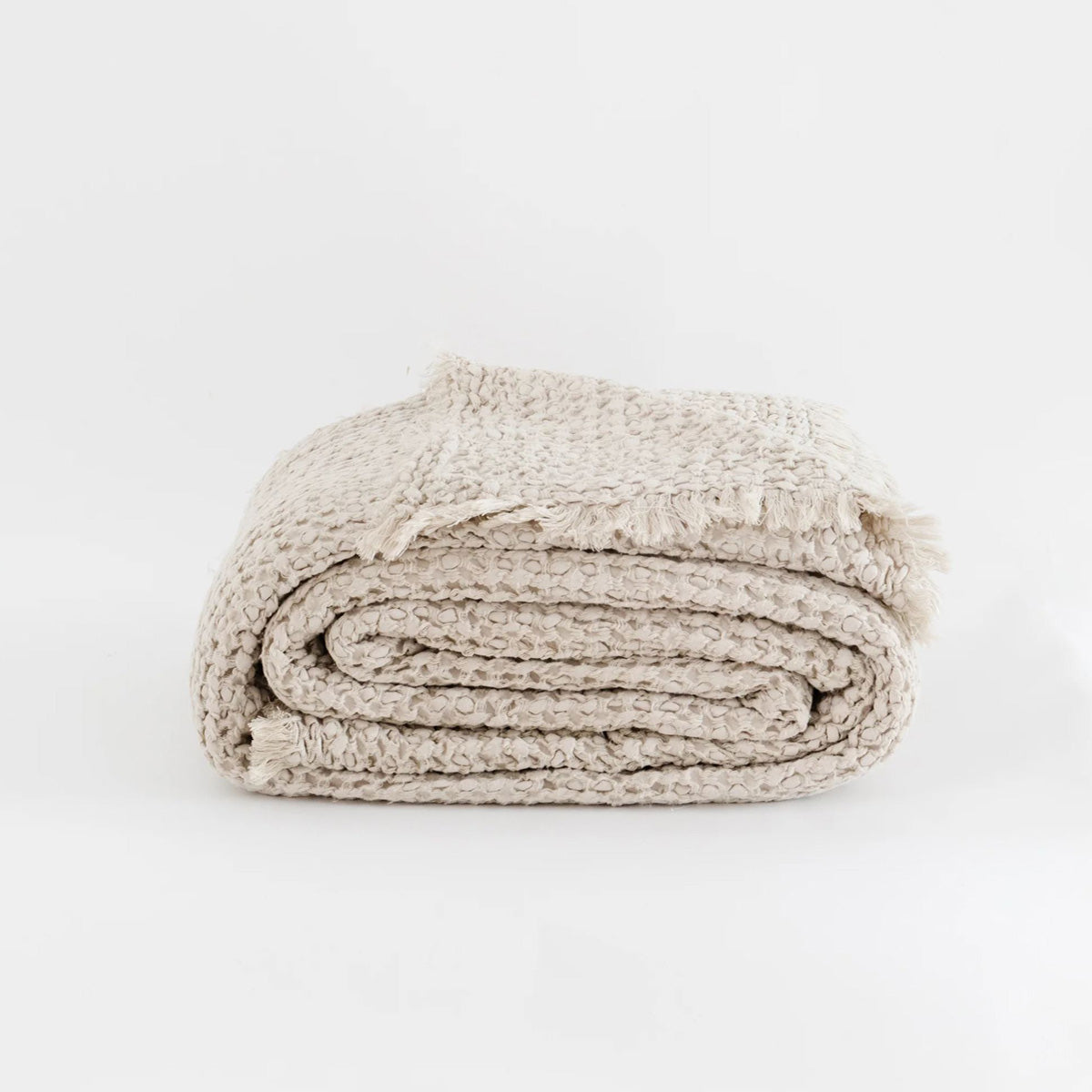Crafted from a 100% pure linen and cotton blend, the Flocca Blanket boasts a richly textured pattern that looks effortlessly relaxed in any setting. The medium weight and generous size allow for a beautiful, soft drape that extends over the width of a bed providing warmth in any season. Finished with a hand-tufted fringe, this blanket lacks no details and is sure to bring a cozy yet airy vibe to your bedroom.