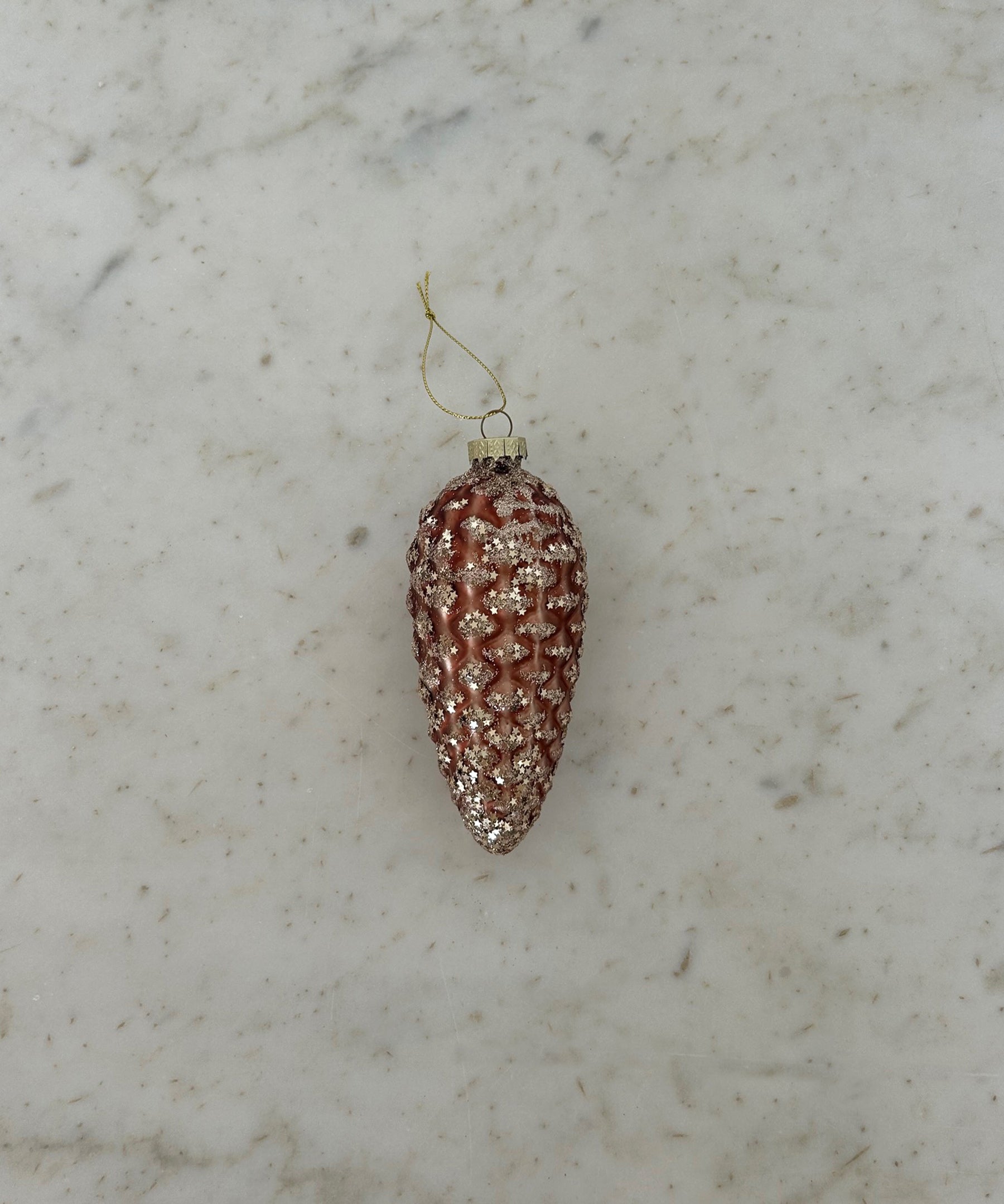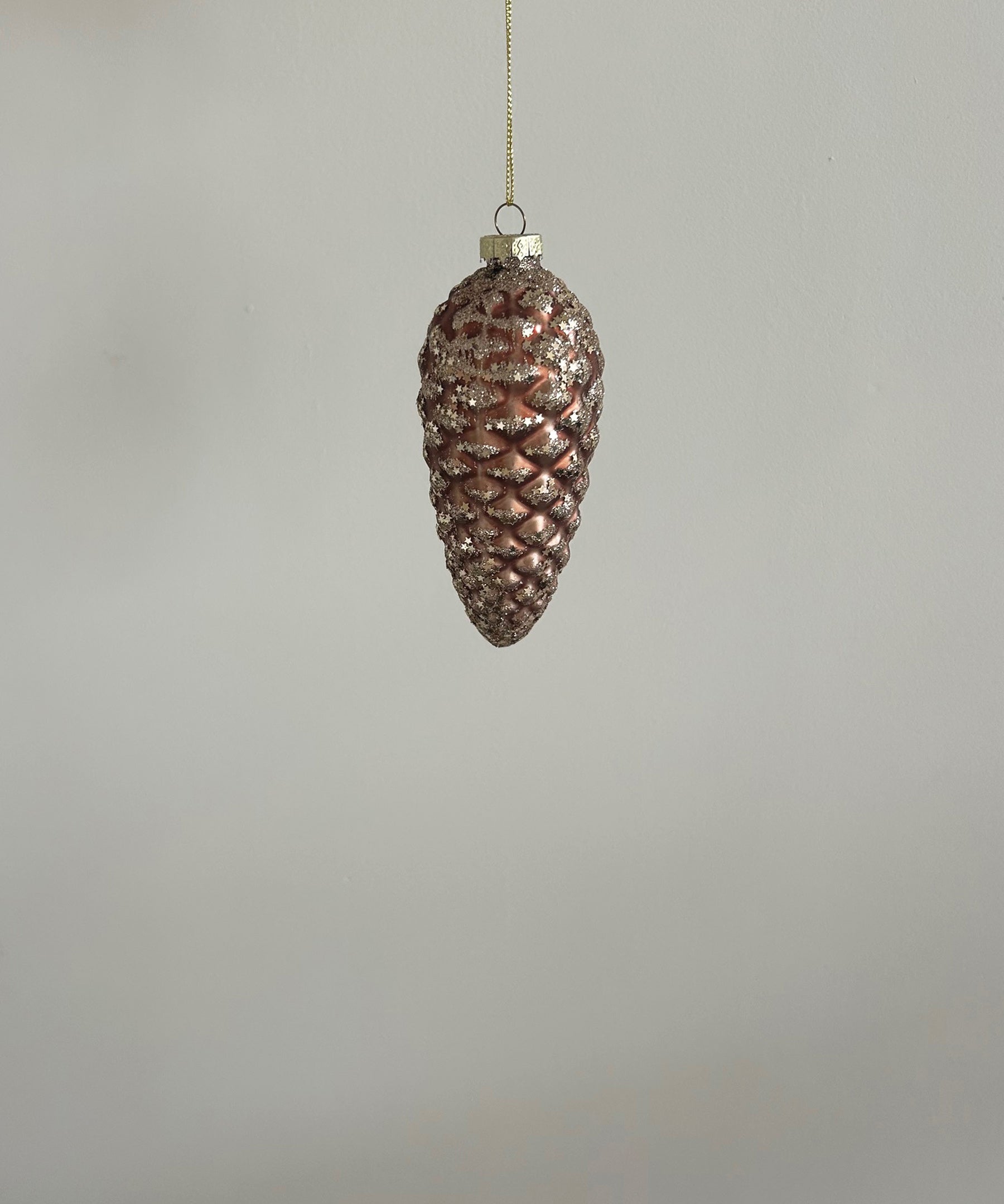 This Glass Pine Cone Ornament brings understated elegance to your holiday décor. Its delicate glass design captures the natural texture of a pine cone, offering a sophisticated and timeless accent to your Christmas tree.