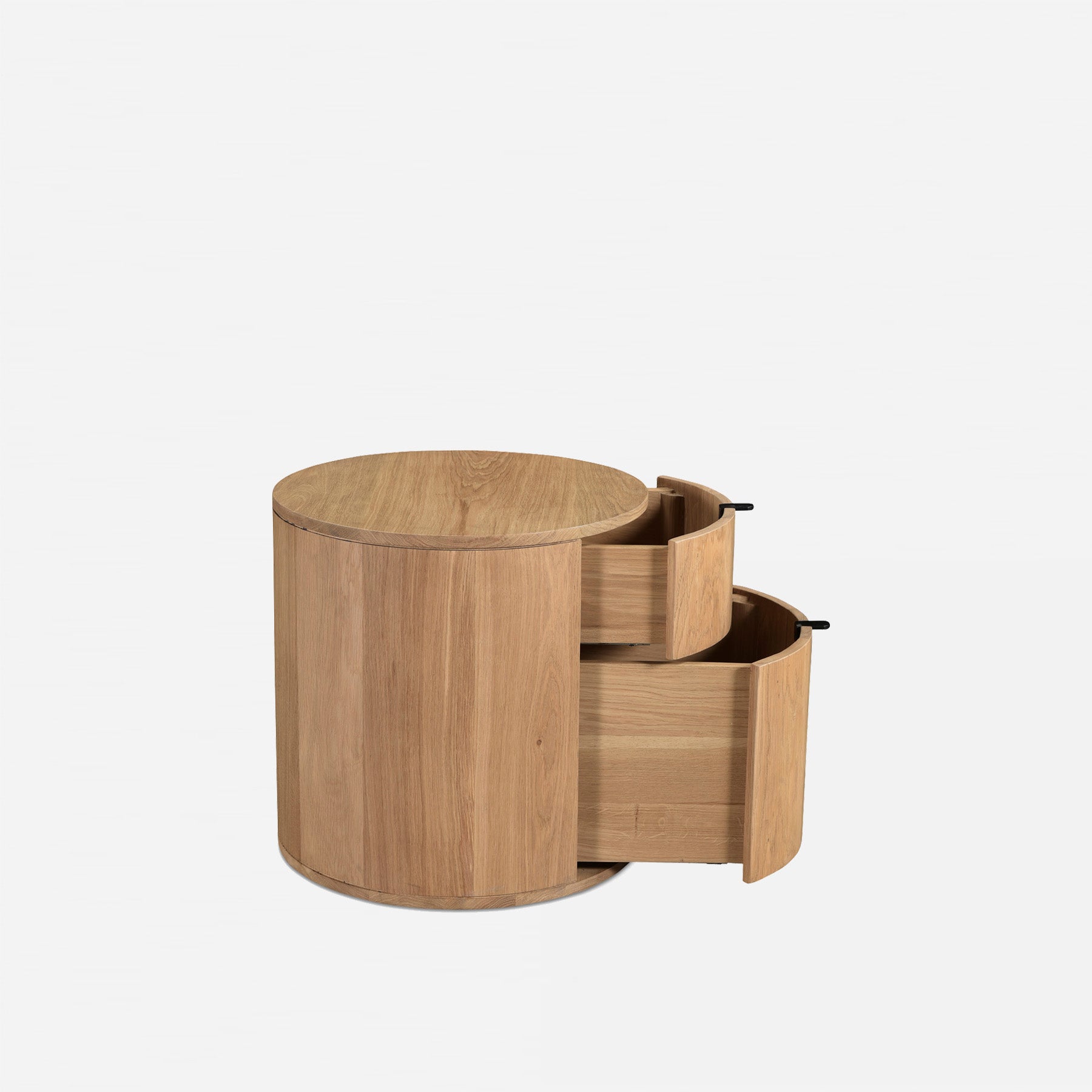 Indulge in sophistication with our Harrington Nightstand. Made from solid oak, its curved, design exudes natural elegance. Featuring two soft-close drawers with metal pull-tab hardware.