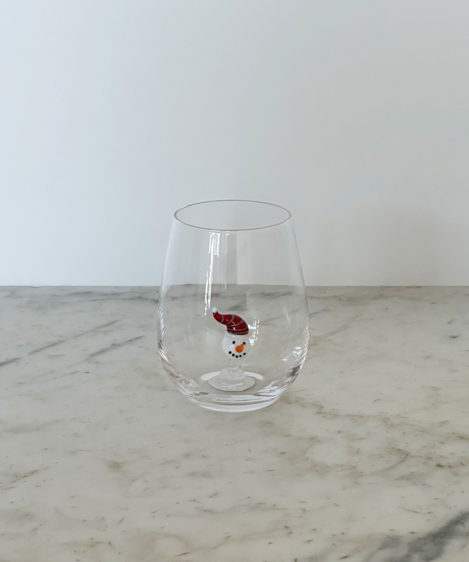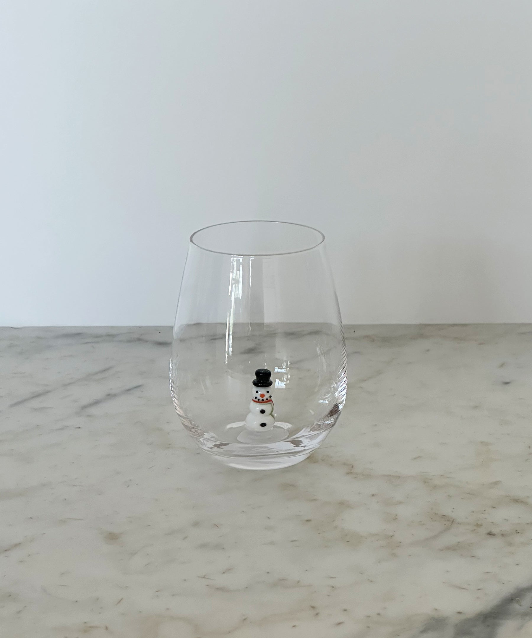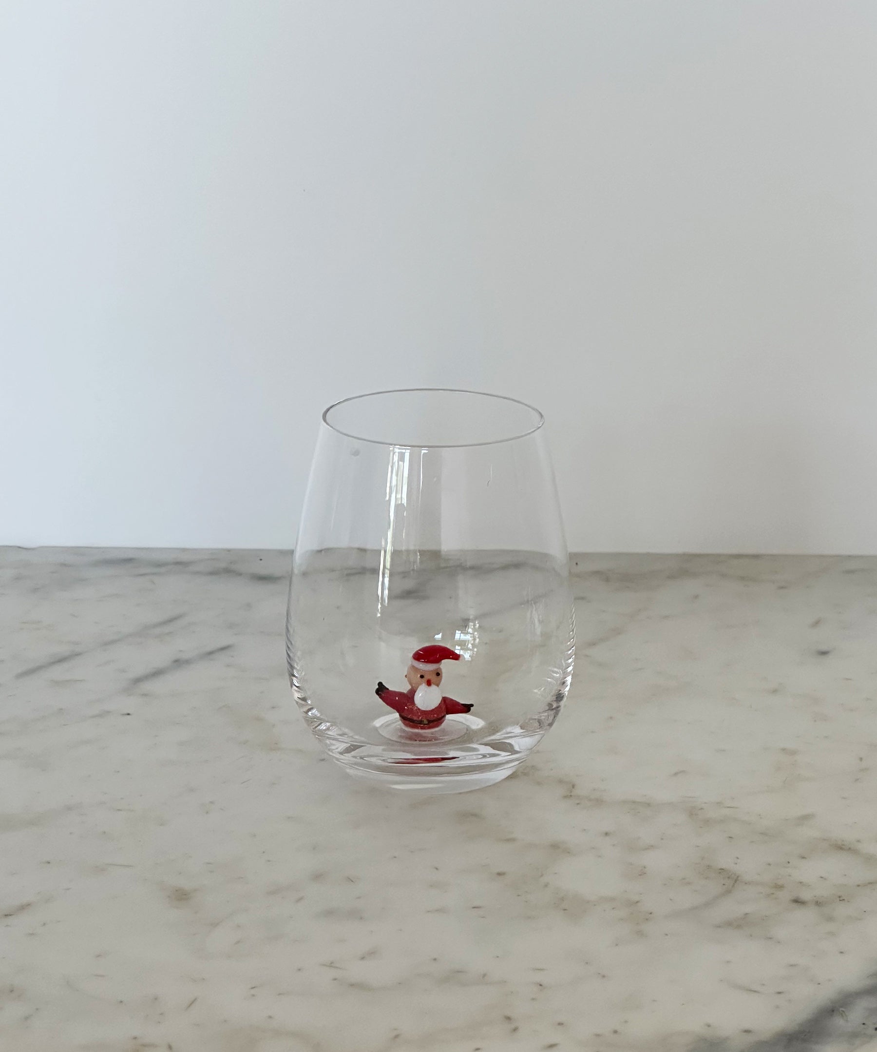 Enhance your festive gatherings with this elegant set of four holiday glasses, each featuring a delicate hand-blown figure nestled inside. Crafted to add a refined touch to your celebrations, these glasses combine artistry and functionality, making every toast memorable. Perfect for holiday entertaining or as a thoughtful gift, their unique design brings charm and sophistication to any occasion.