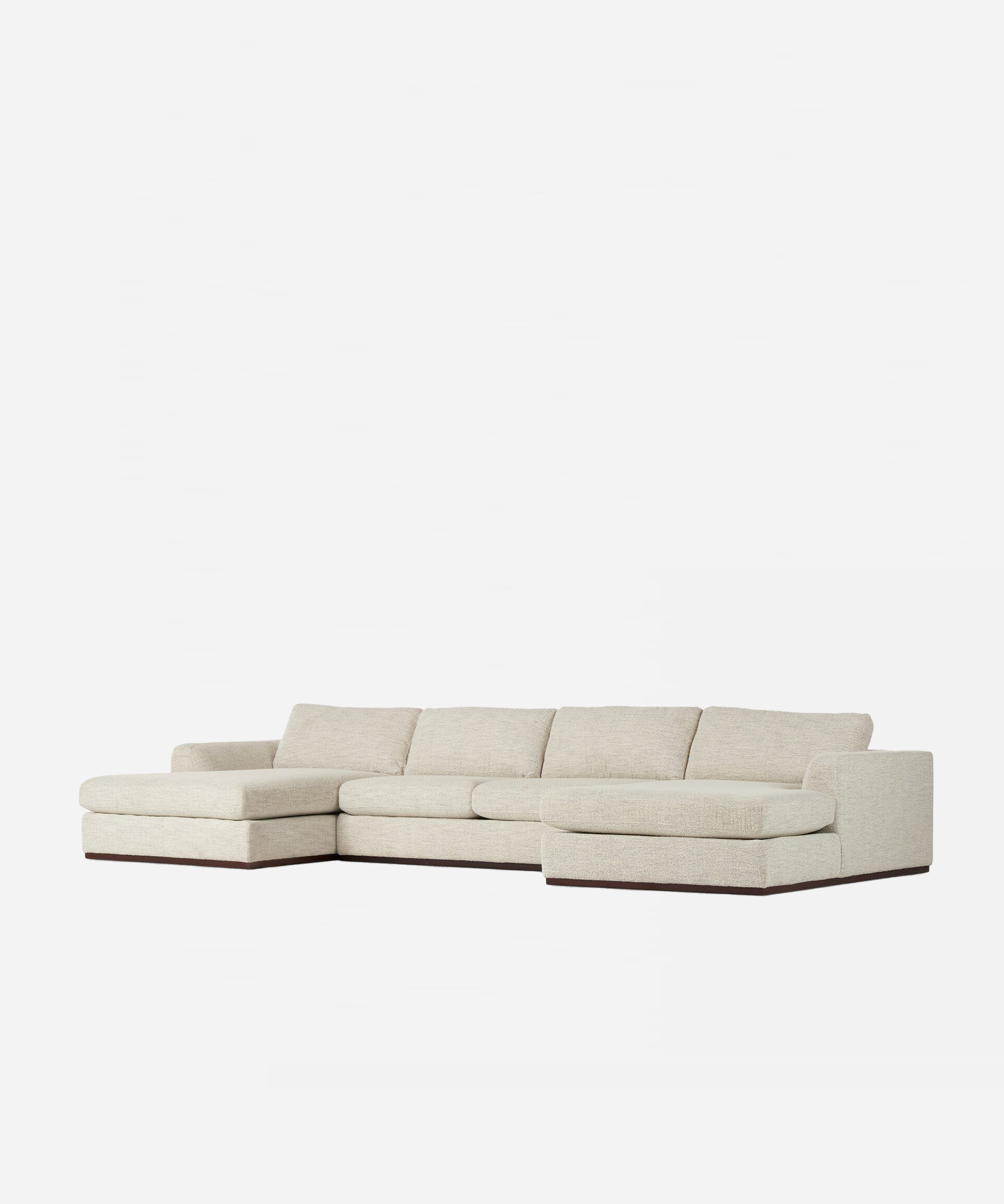 The Kinsley 3-Piece U Sectional combines contemporary design with practical comfort. Crafted from high-performance fabric, this sectional features a double chaise configuration that invites relaxation across its generous seating. The durable fabric resists wear and maintains its appearance through everyday use, making it an ideal choice for households seeking both style and substance in their seating investment.