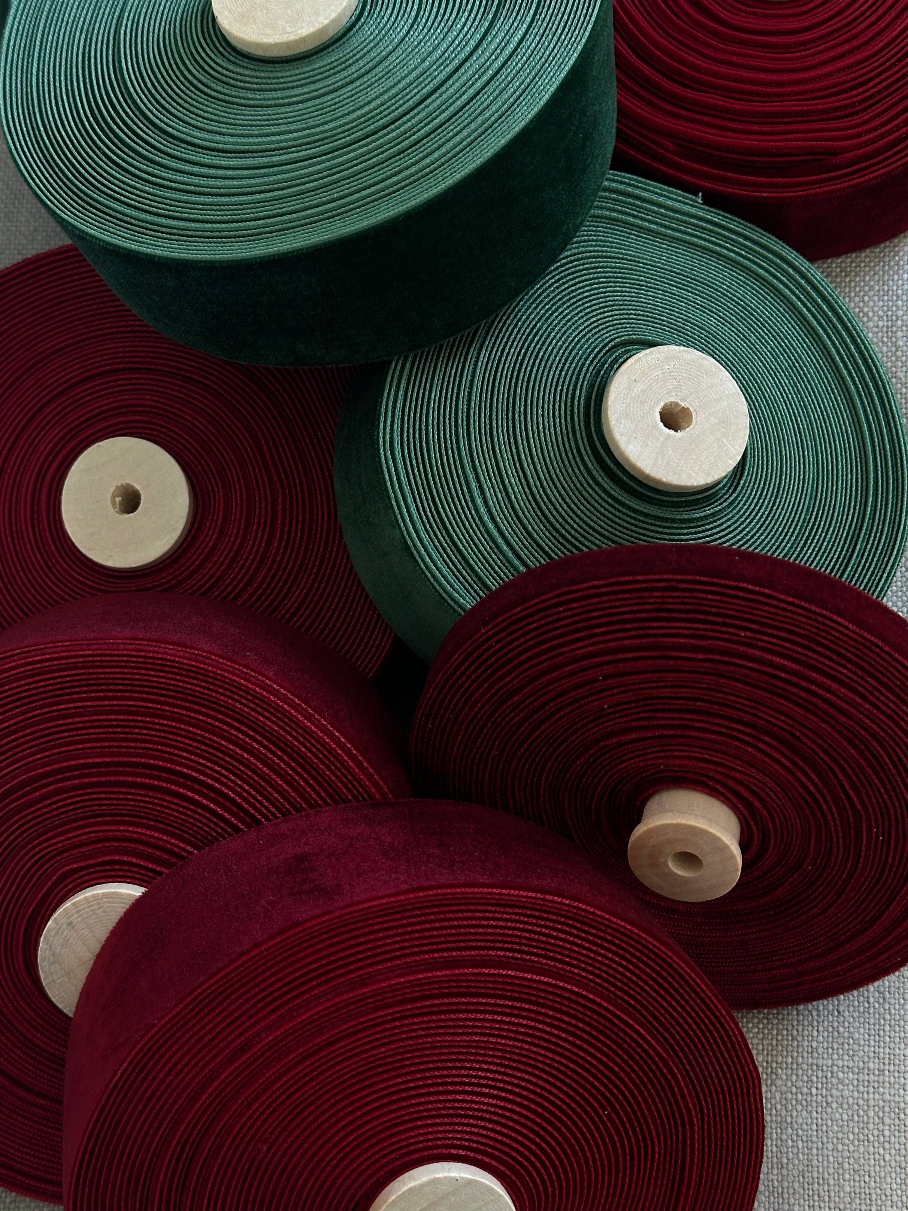 Elevate your holiday décor with the sophisticated charm of Label C Velvet Ribbon. Available in classic red and green, this ribbon offers two thickness options and is elegantly presented on a beautiful wooden spool. Its rich texture and vibrant colors add a timeless festive touch to any gift or decoration.