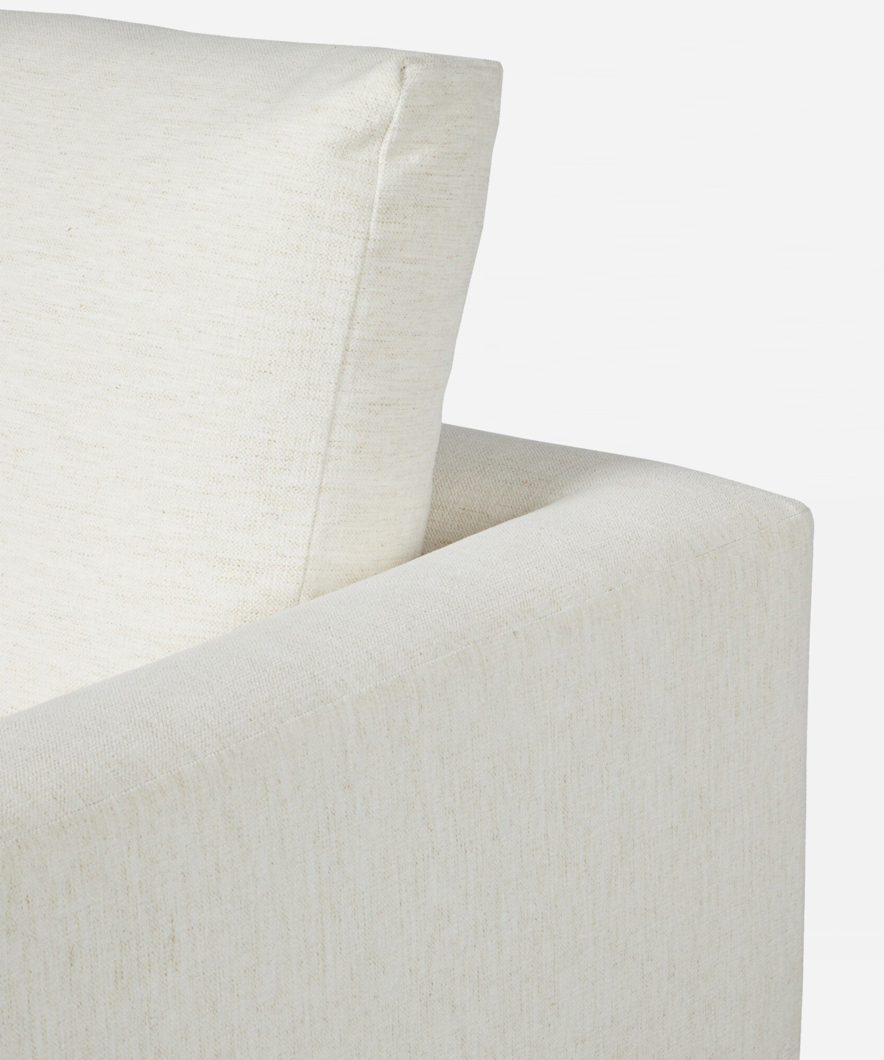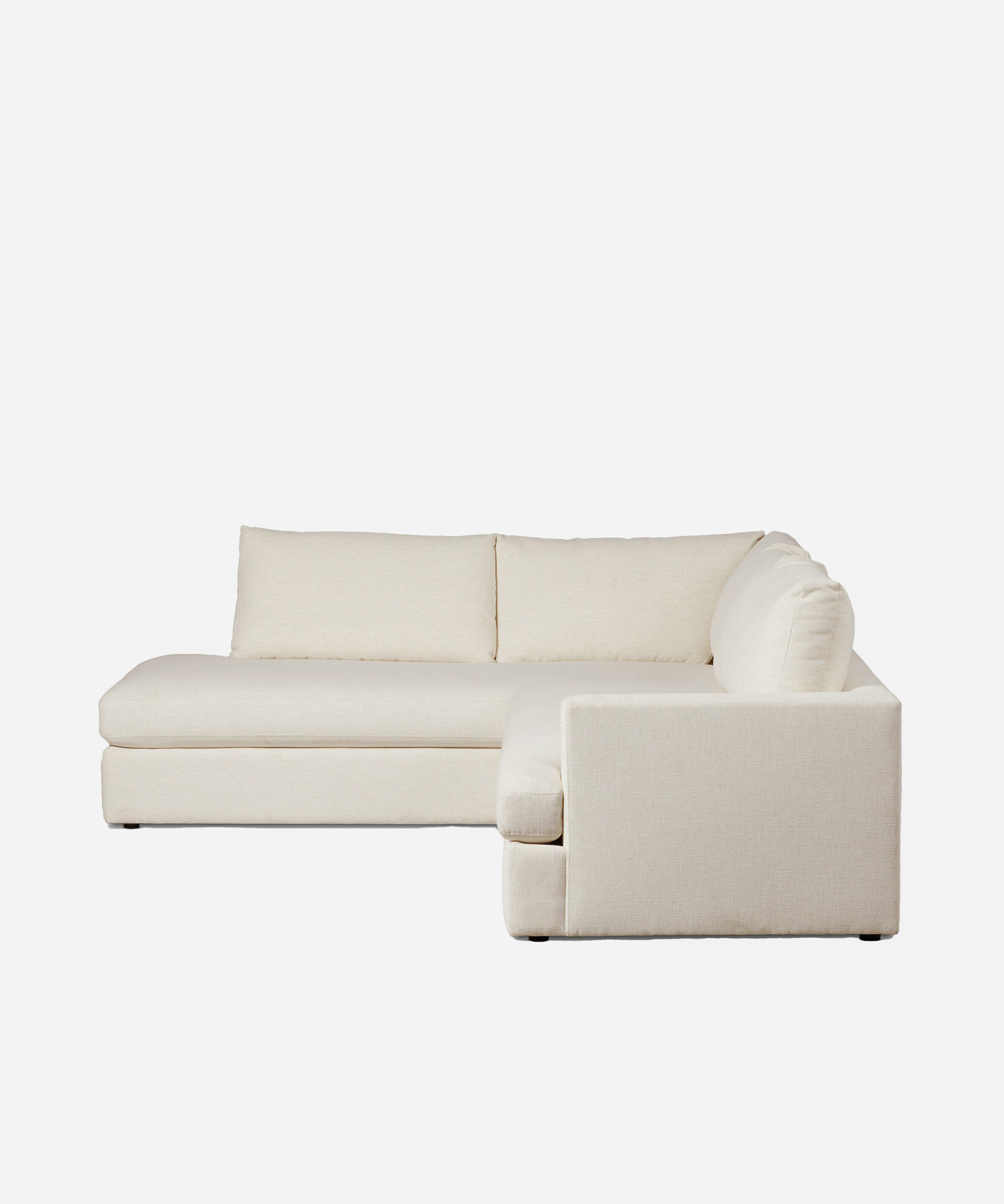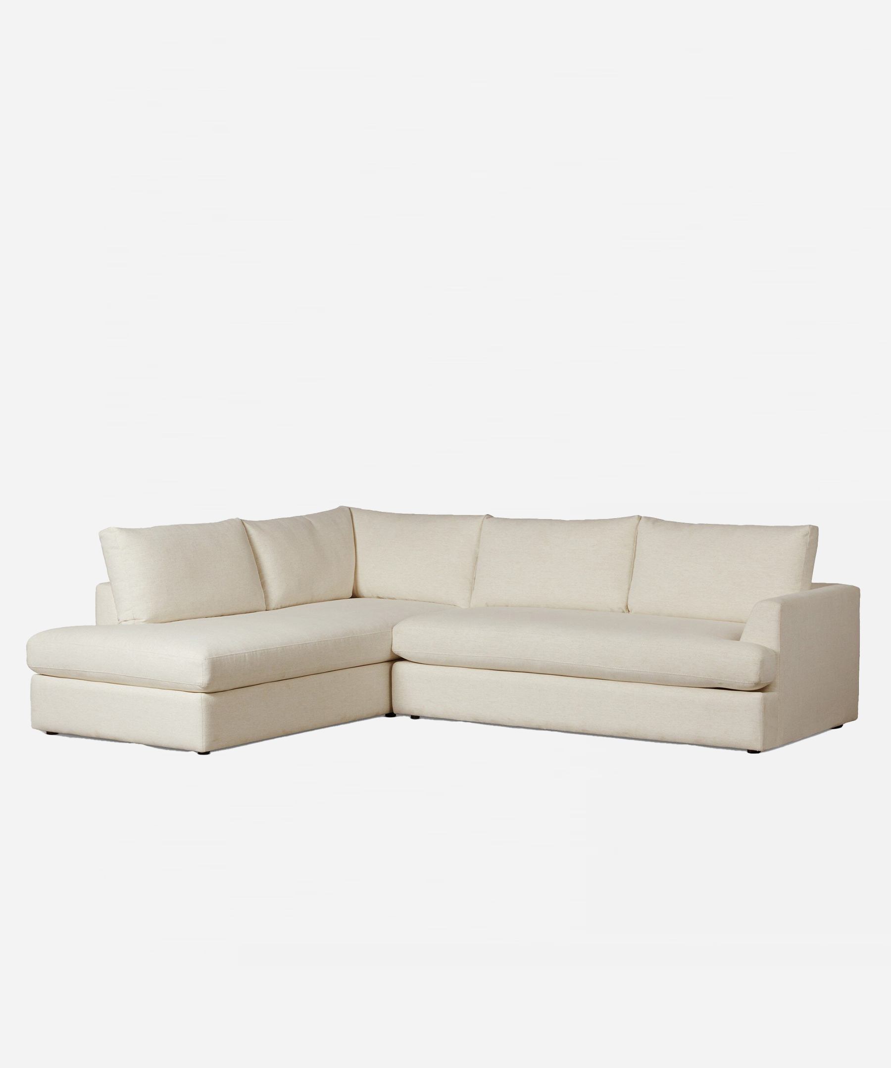 The Langford 2-Piece Sectional brings refined comfort to compact spaces with its thoughtfully proportioned frame. Wraparound bumper-style seating maximizes usable space, while the integrated chaise provides an inviting spot for relaxation. Angled arms add contemporary elegance, and the durable performance upholstery resists stains and wear, ideal for homes that demand both style and practicality. A sophisticated choice for modern living.