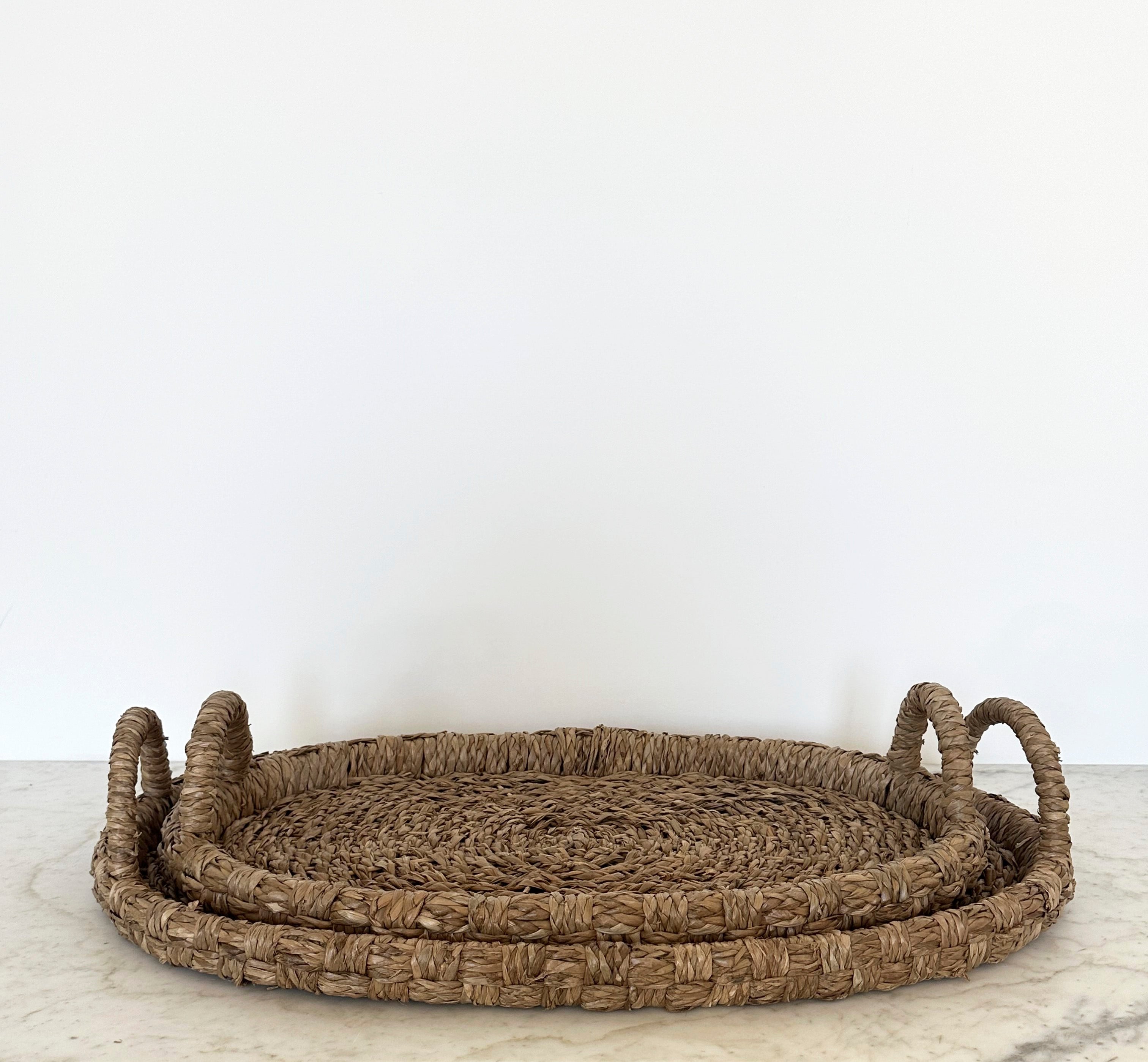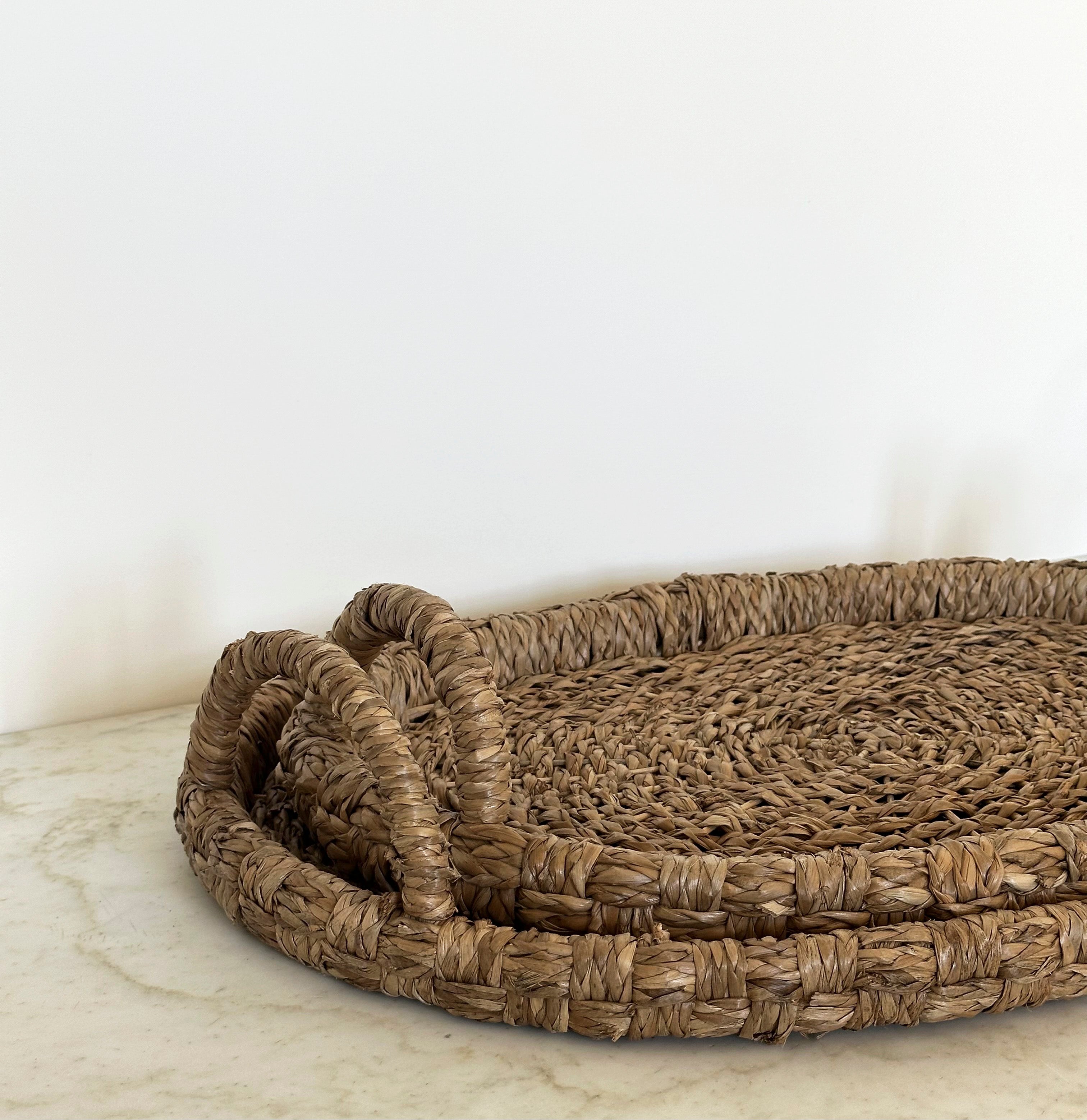Elevate your living room, kitchen, or bedroom with the Linden Woven Tray, crafted from natural seagrass and rattan. Its elegant design serves as a refined backdrop for botanicals and curated books, or as a charming breakfast tray with your favorite cup and vase. A subtle, sophisticated accent that brings warmth and style to any space.