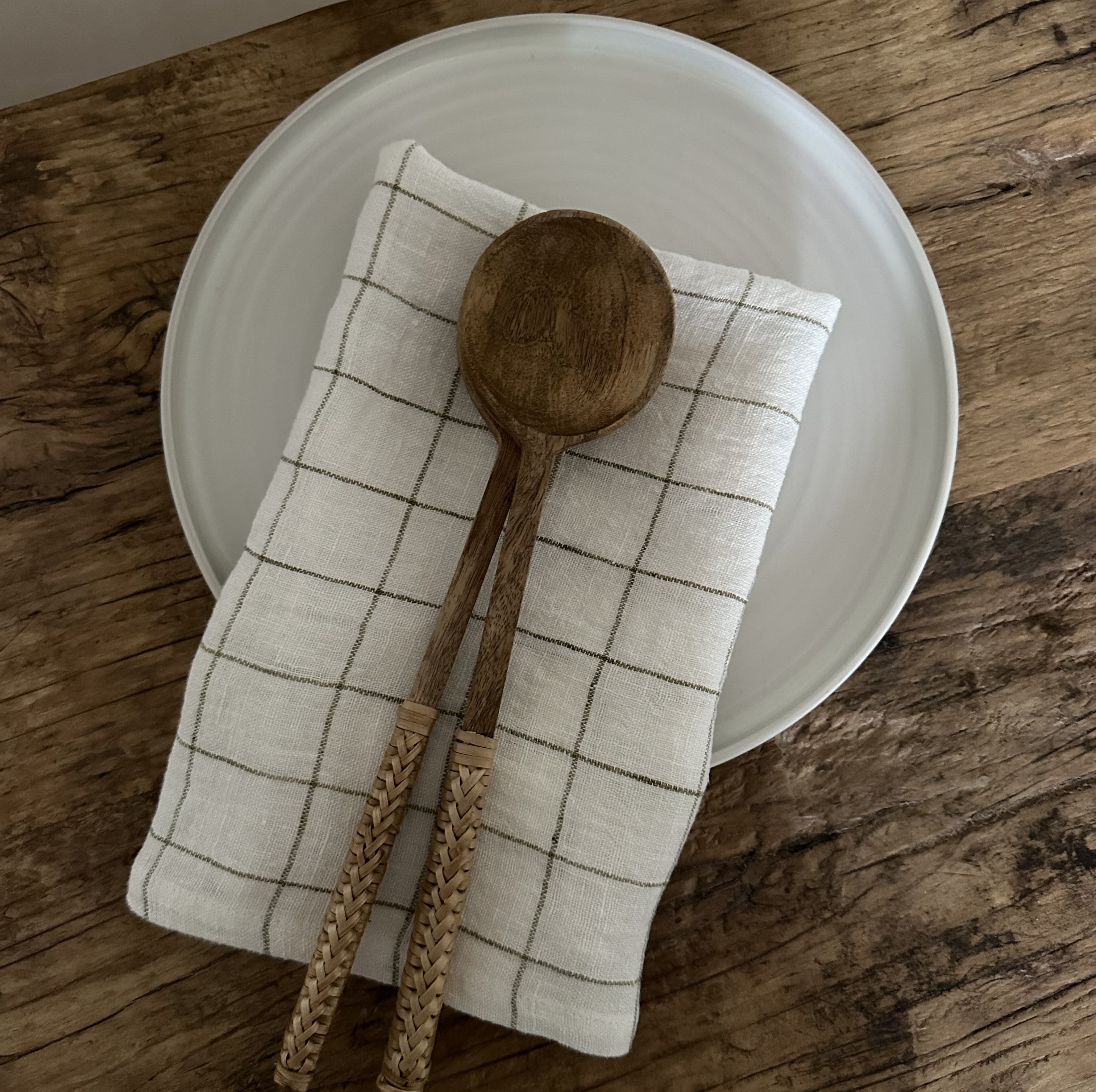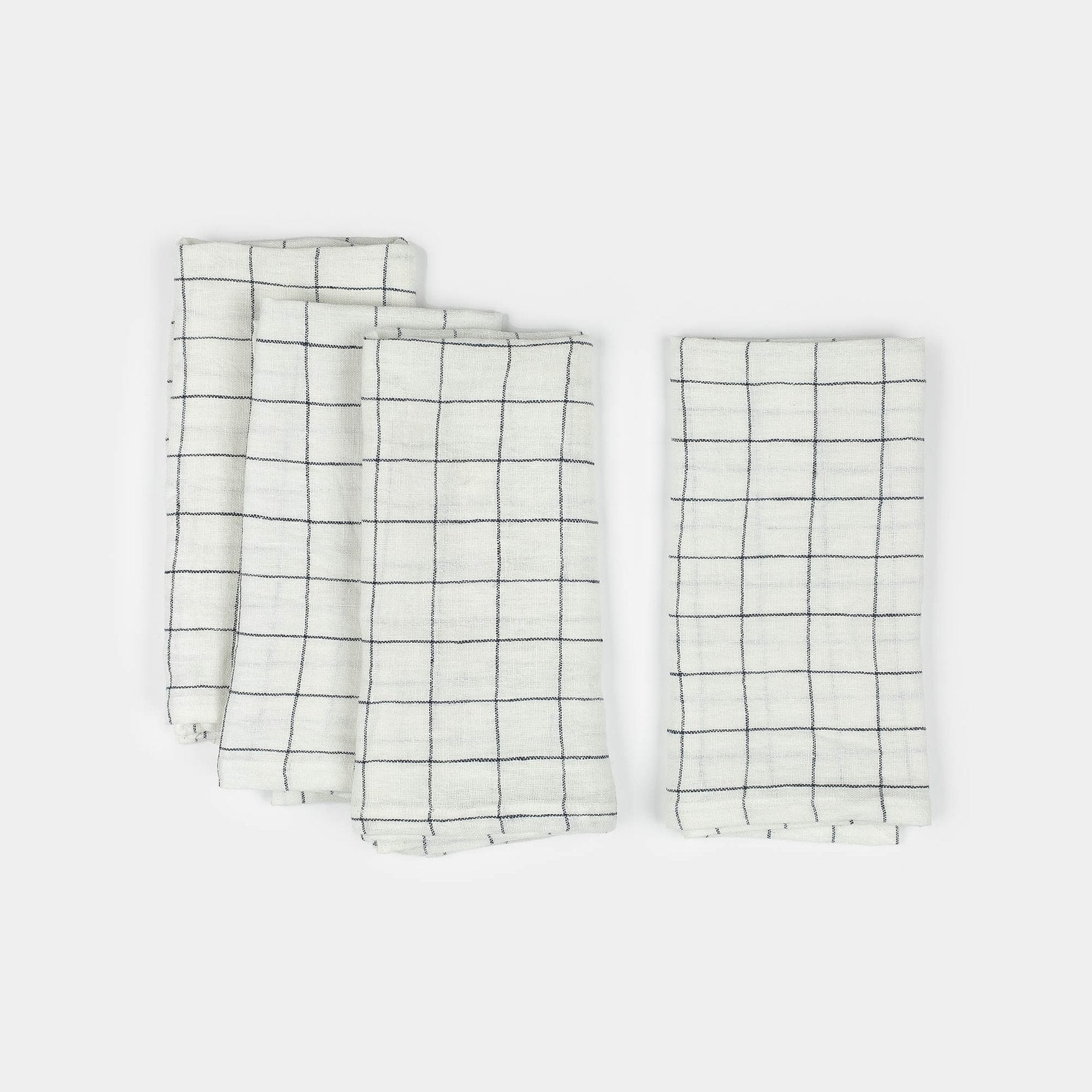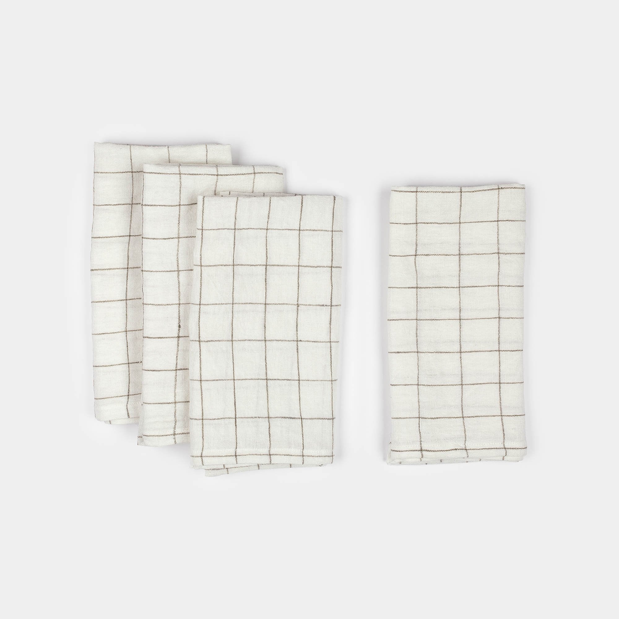Perfect for endless summer dining. Generously sized, classic windowpane plaid. These linen napkins are meticulously woven and stone washed to perfection in a quiet village in southwest India. Each is made from the finest imported Belgian flax.