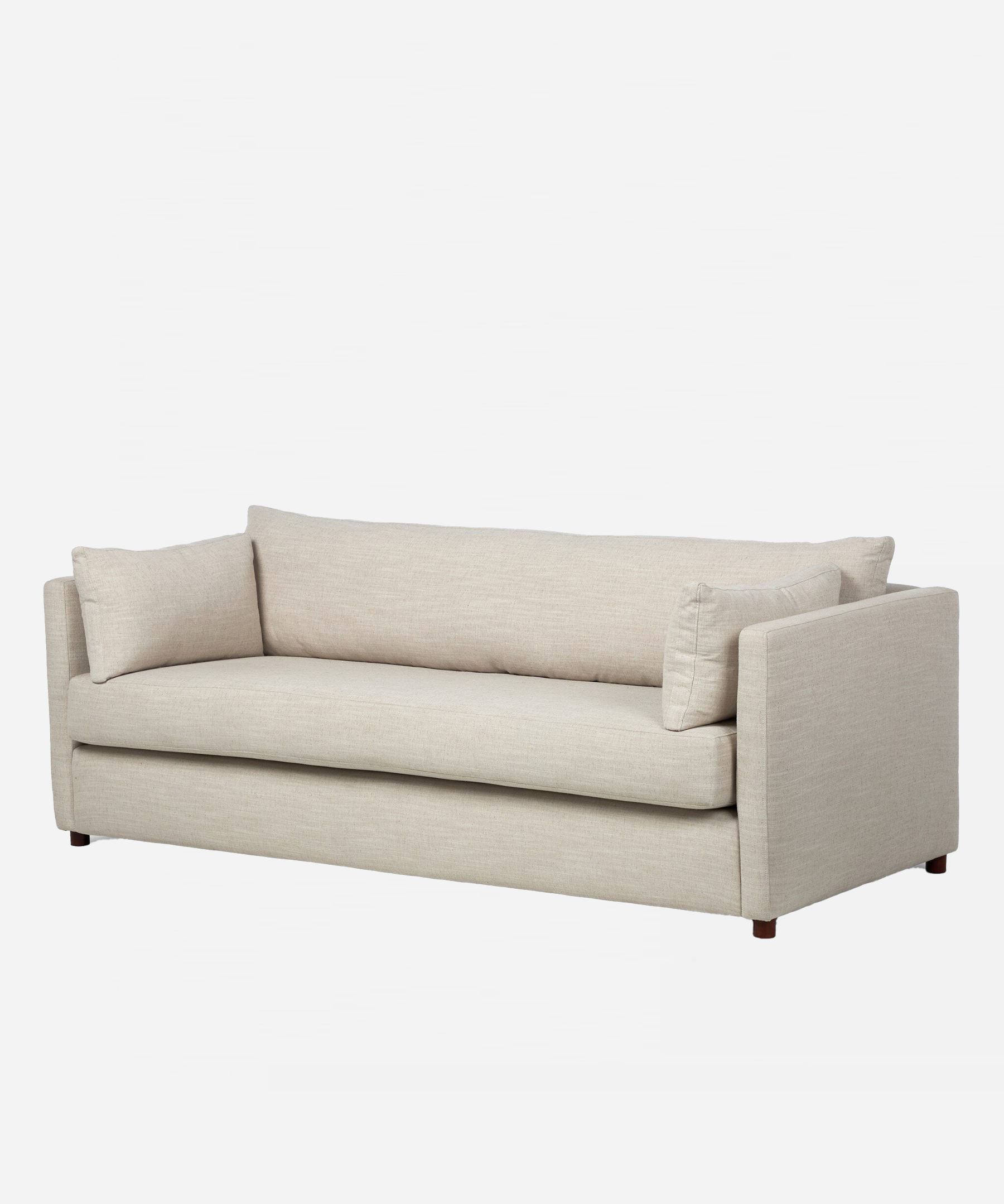 The Liora Sofa combines contemporary elegance with everyday comfort. Its streamlined silhouette features slim track arms and loose arm pillows for a refined, tailored aesthetic. Engineered with supportive cushions and S-spring suspension, this versatile piece delivers the perfect balance of style and inviting comfort.