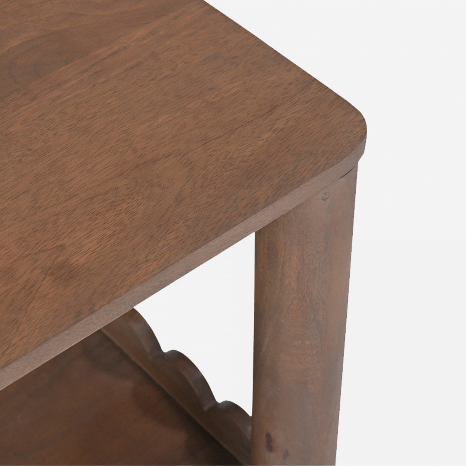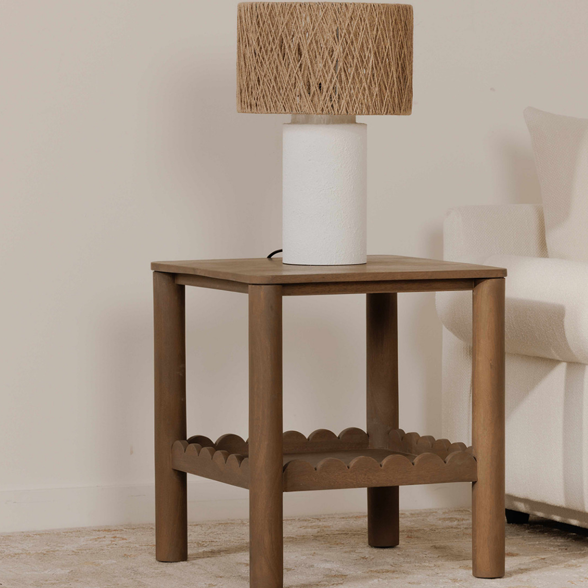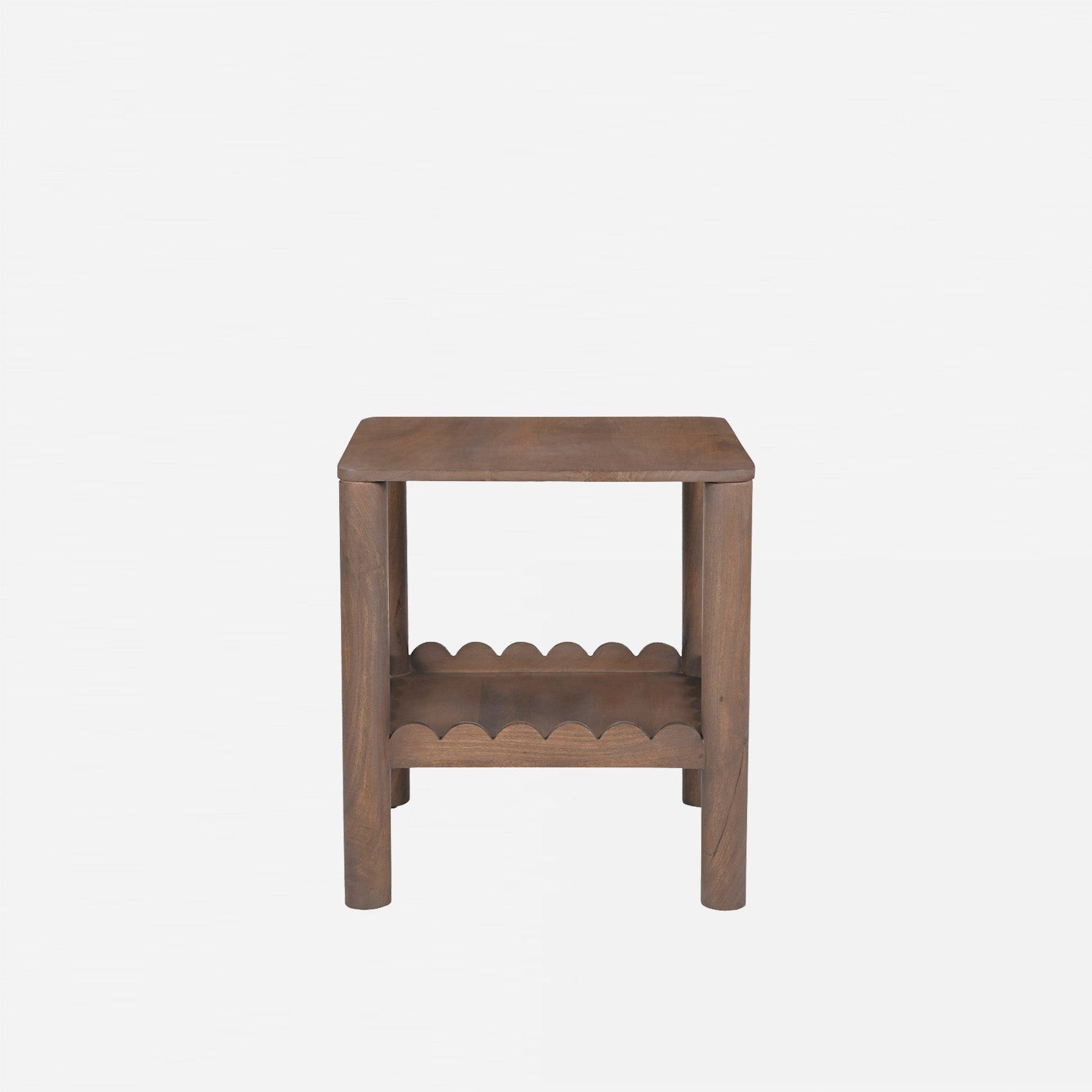 Elevate your living space with the Margaux Side Table. Combining modern aesthetics with traditional design, its sleek curves and sturdy post legs add an exclusive touch. Delicate scalloped edges on the lower shelf exude timeless elegance, evoking classic influences.