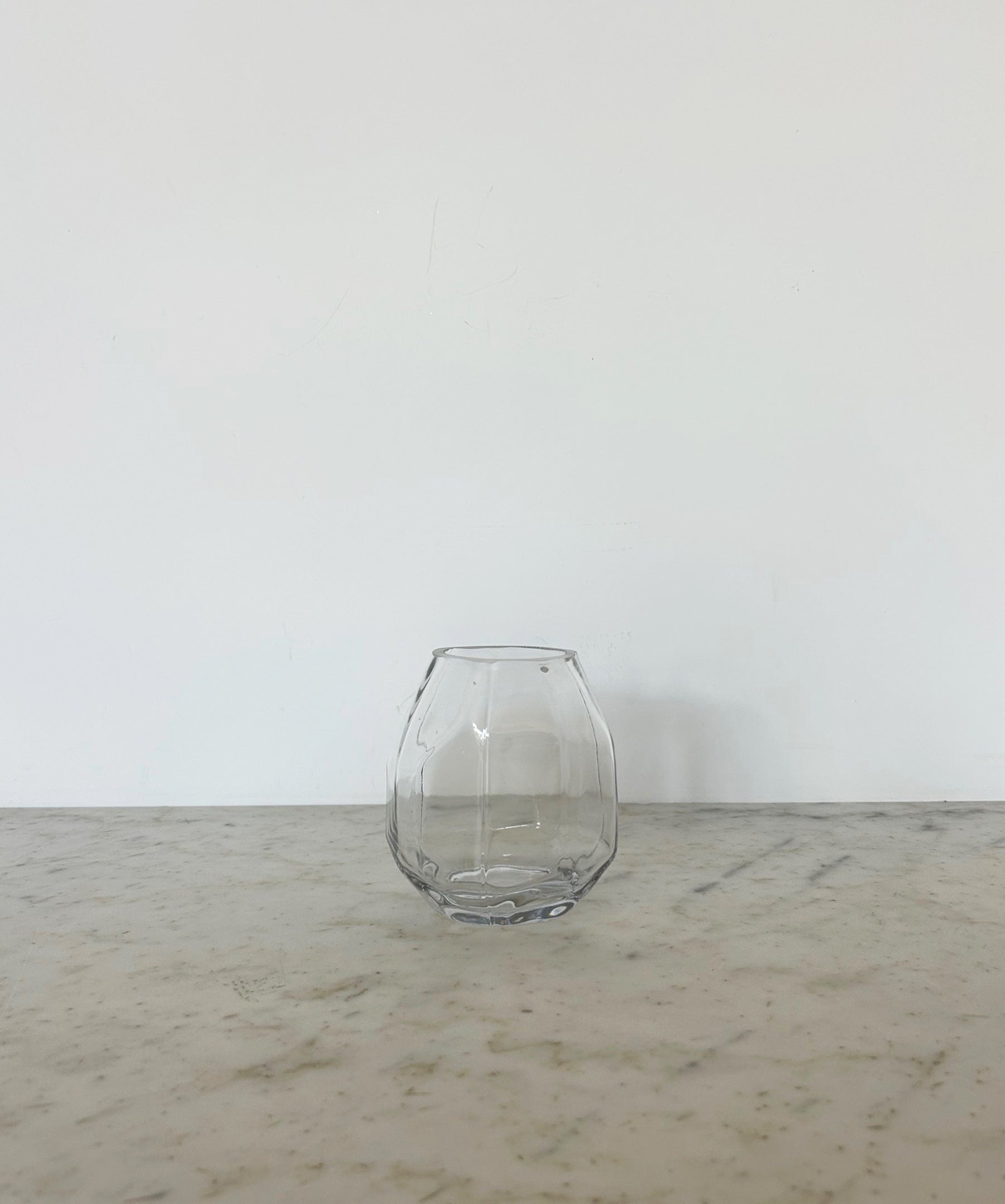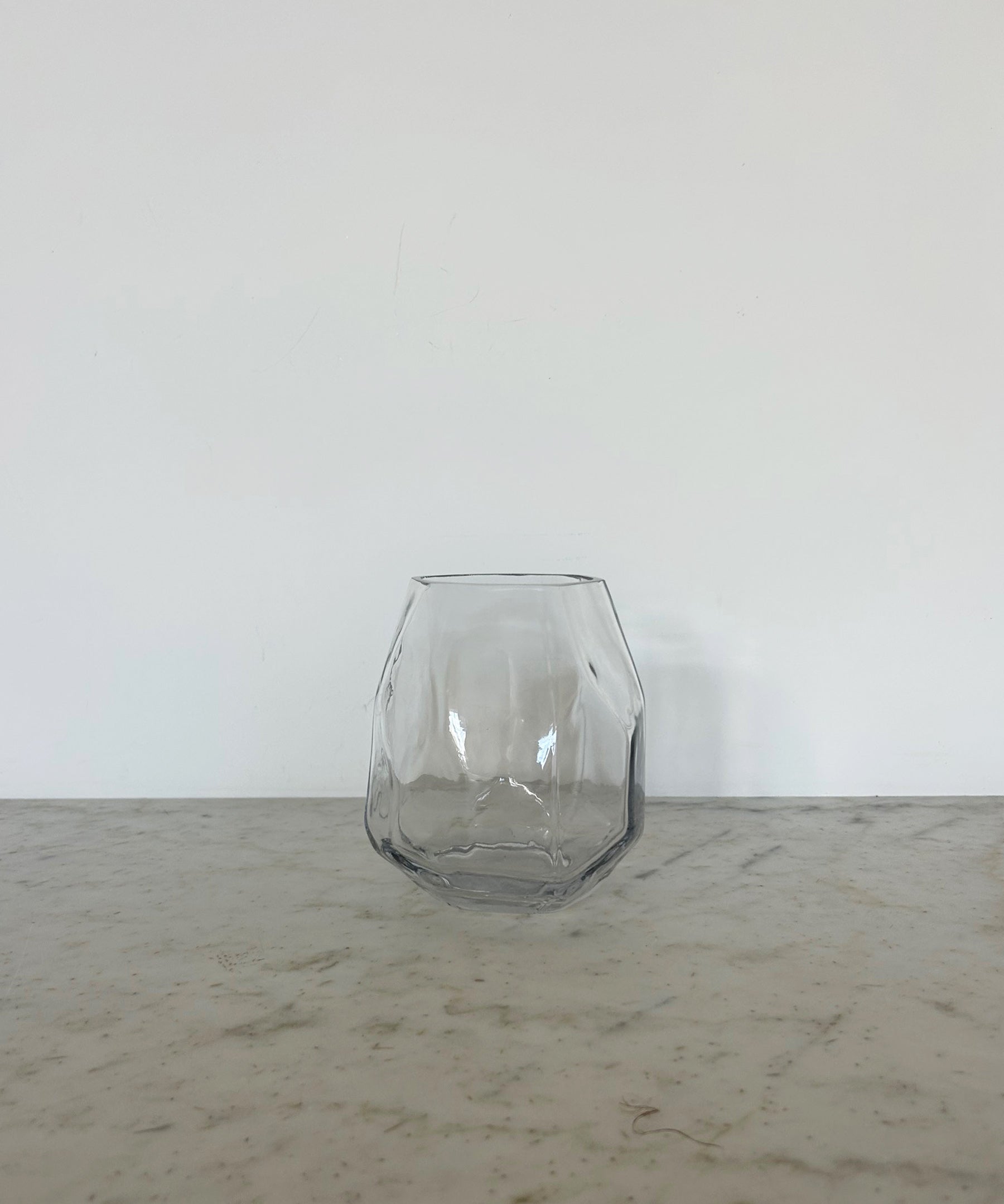 Margot Vase captures organic elegance with its gracefully curved glass silhouette. This sculptural piece features flowing, asymmetrical lines that evoke natural forms, making it a striking focal point for any room. The transparent glass allows light to play across its contours, creating subtle shadows and depth.