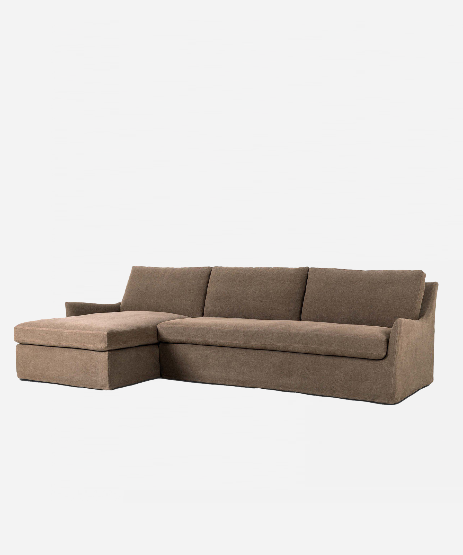 The Mercer 2-Piece Sectional combines timeless elegance with everyday practicality. Featuring gently sloped, flared arms and a graceful floor-length slipcover, this piece brings refined sophistication to any living space. The soft, tight weave fabric offers a luxurious feel while remaining durable and toxin-free. The fully removable, machine-washable slipcover ensures effortless maintenance, allowing you to keep your sectional pristine for years to come.