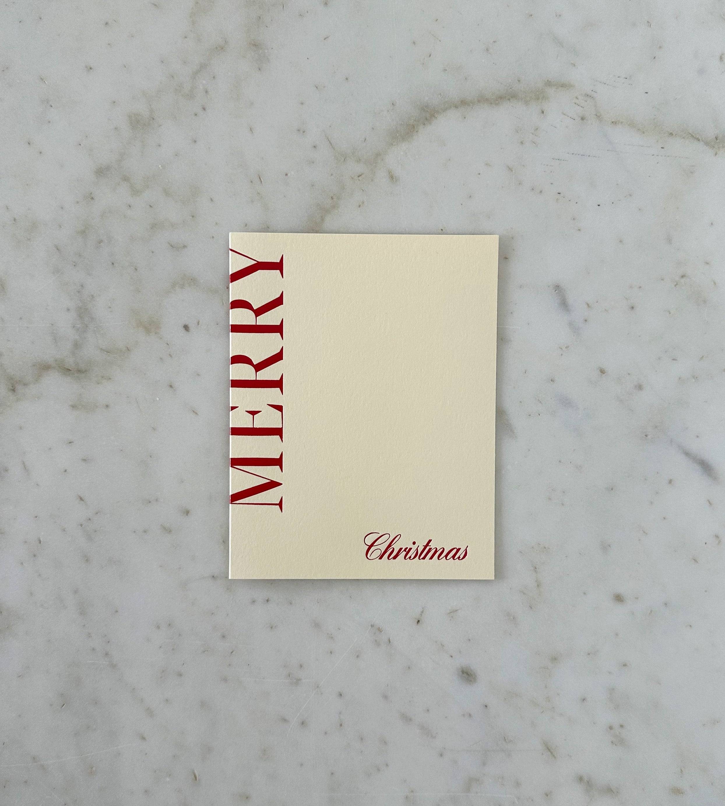 Thoughtfully designed in Santa Barbara and expertly printed in Los Angeles, this Merry Christmas Card is crafted on premium FSC-certified and recycled stocks. Using a historic Heidelberg Windmill press, the letterpress technique creates a tactile, refined finish. Merging timeless craftsmanship with modern minimalism, this elegant card offers a sophisticated way to share warm holiday wishes.