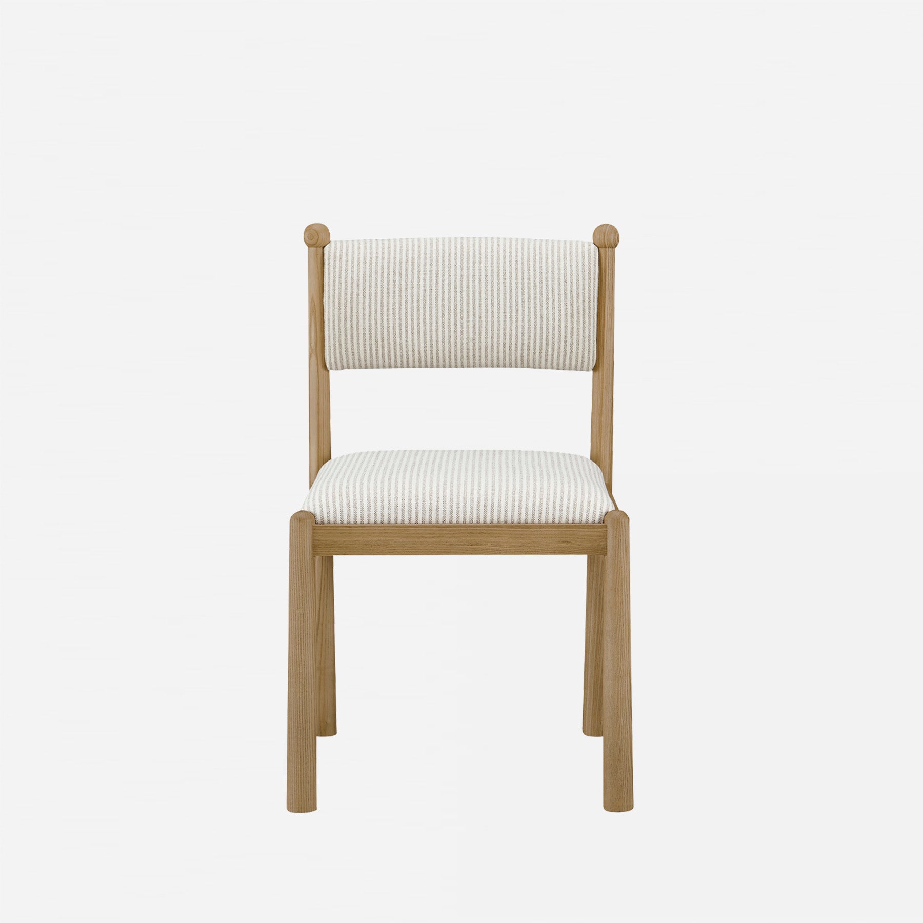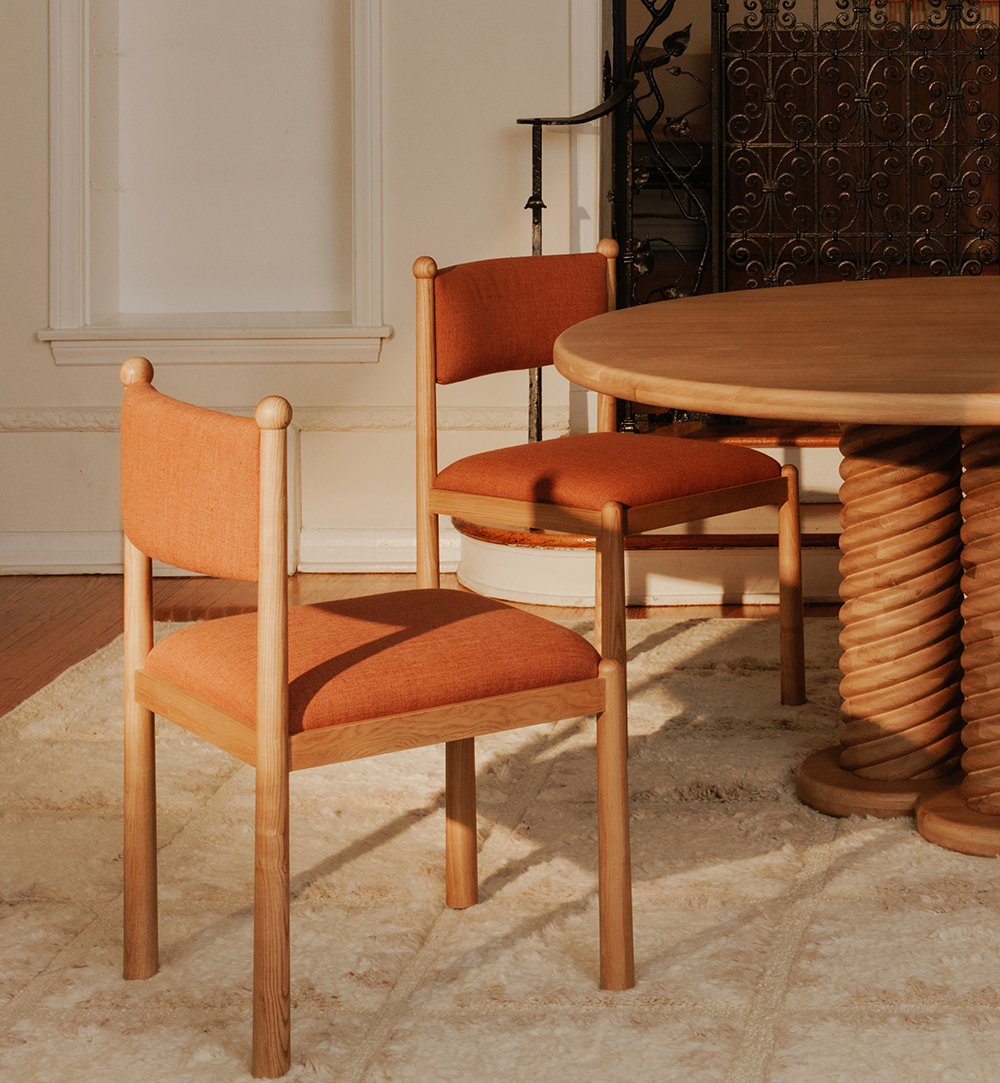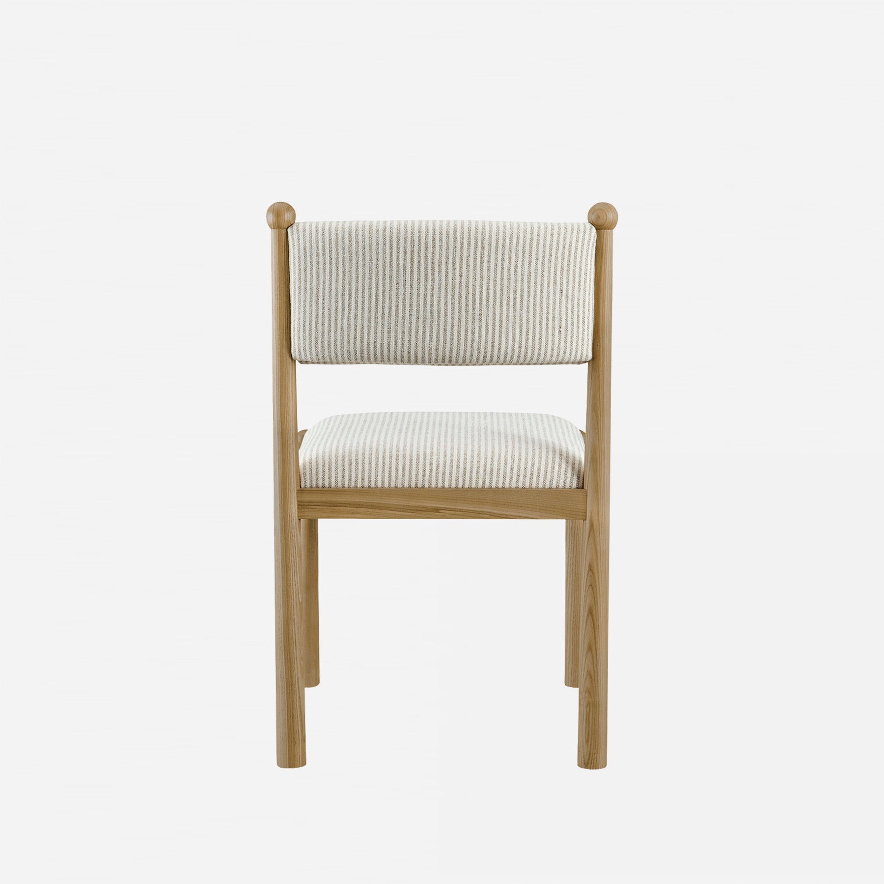 The Mila Dining Chair captures timeless allure with graceful curves that speak of heritage and finesse. A warm stained frame with whimsical finial details evokes a vintage style elegance.
