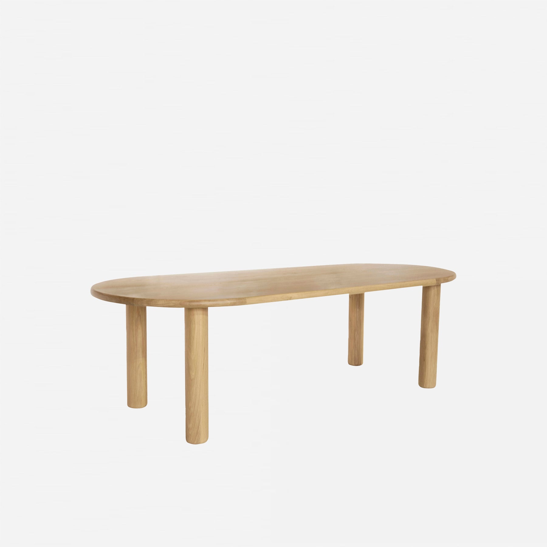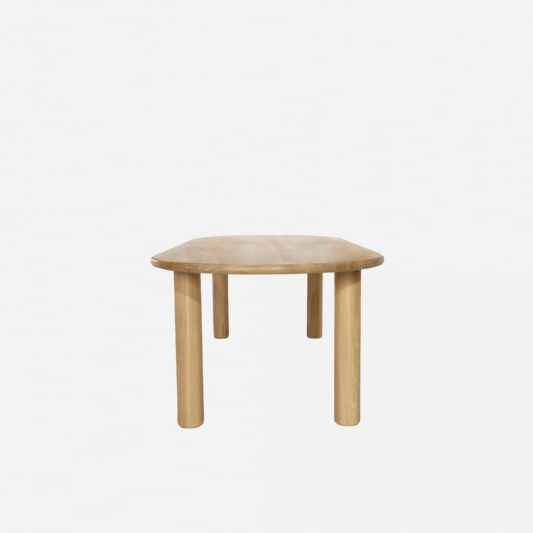 Elevate your dining experience with the Moy Dining Table. Its thick, rounded edge and sleek column legs exude warmth and style, while the light oak finish adds visual lightness.