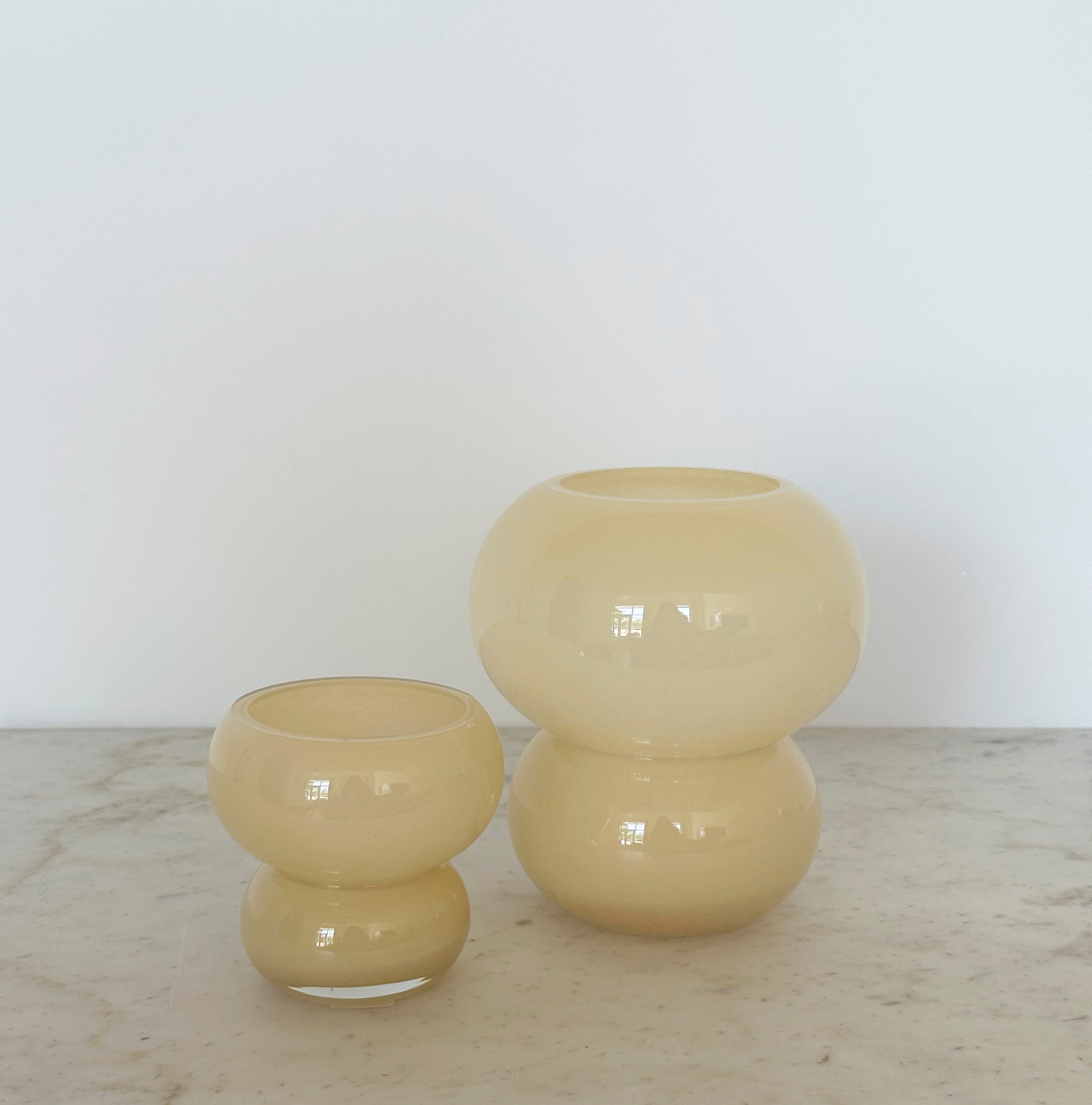 Introduce elegance into your space with the Pollen Vase, handcrafted with stacked spheres for a trendy bubble effect. The soft yellow color and sleek shape add a modern touch to any floral arrangement.