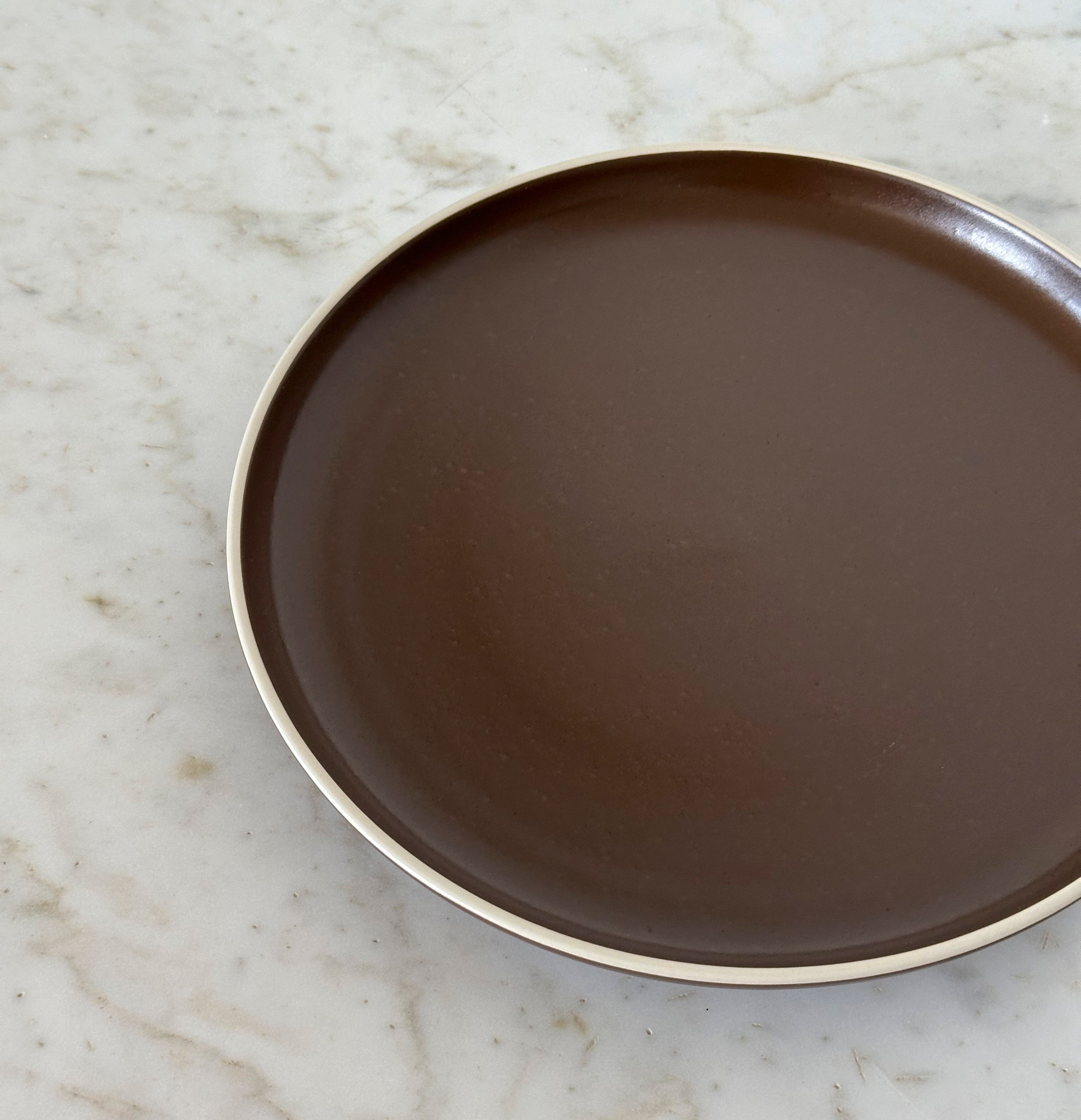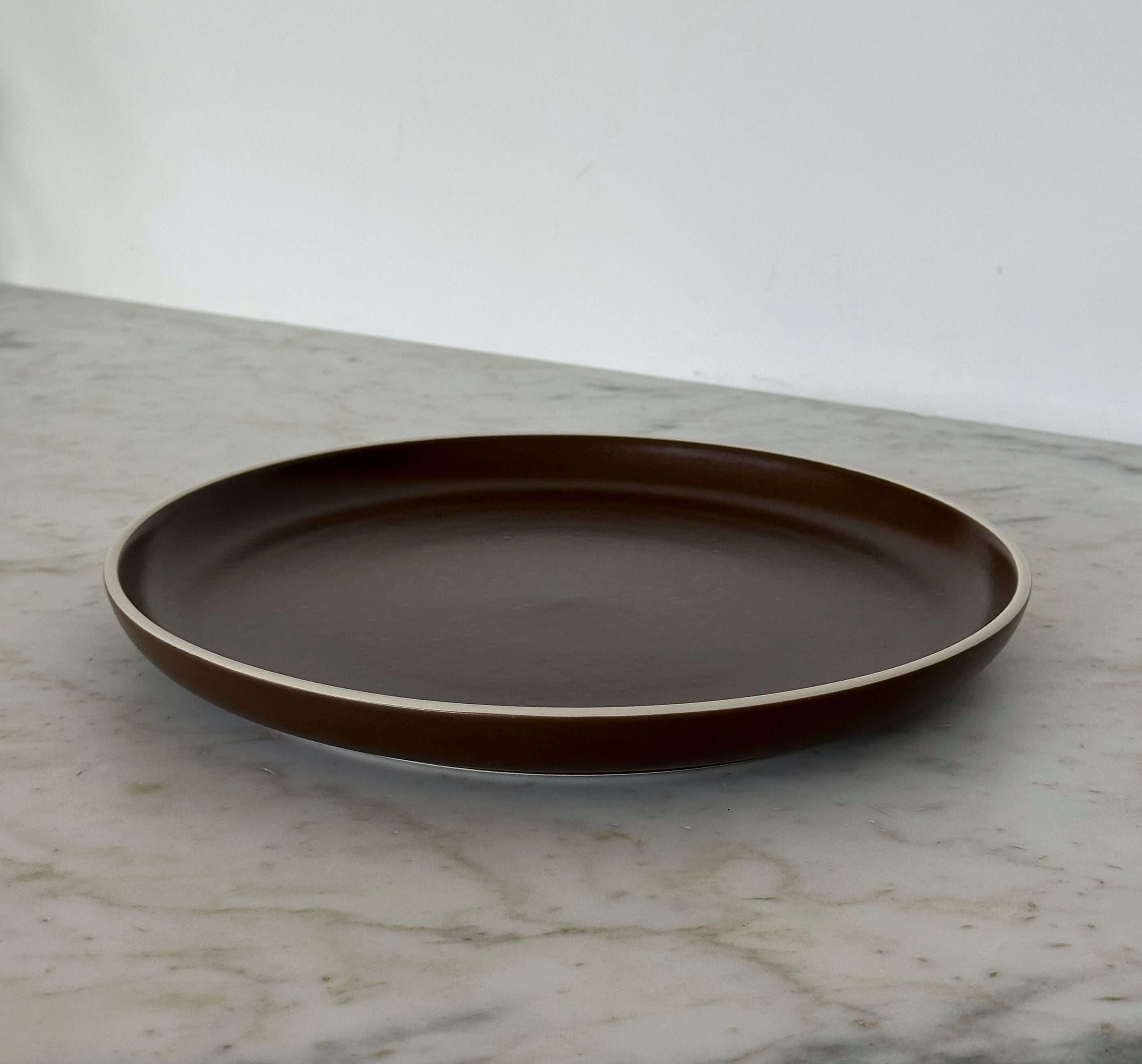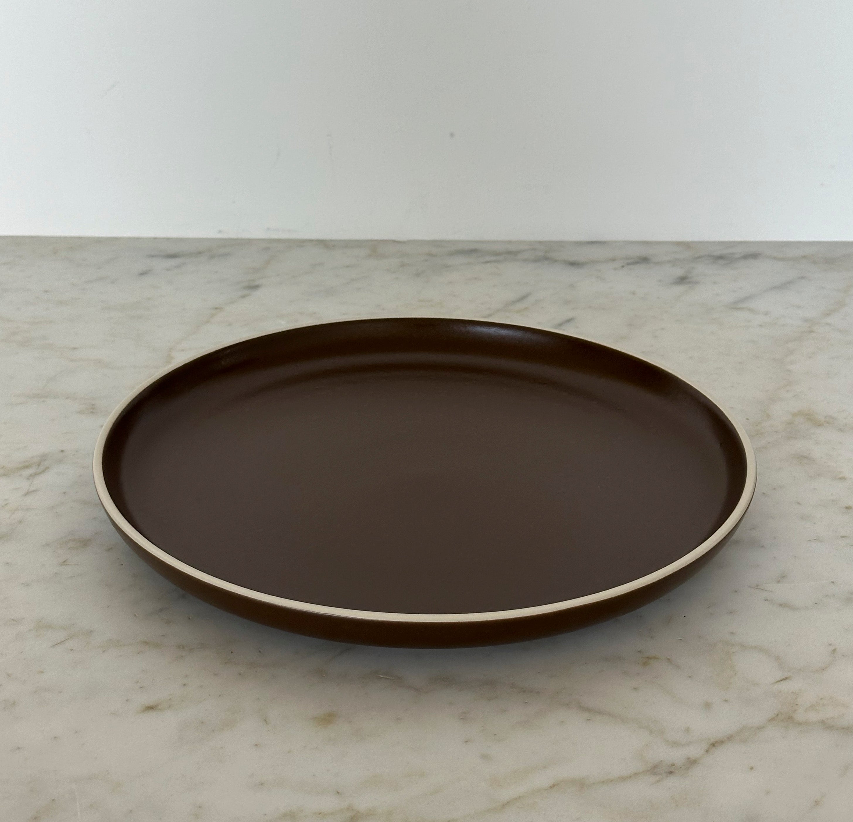 The Rim Dinner Plate features a clean minimalist style that inspires the senses. With tiny, detailed speckles and a lustrous handmade rim, this plate contrasts light and dark tones for a unique look. Perfect for any gathering, its simplicity and cleanliness highlight its rawness and pureness.