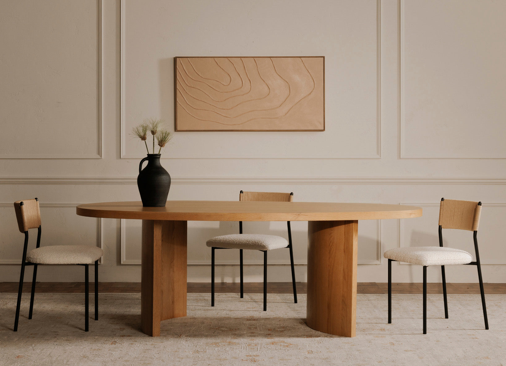 Elevate your dining experience with the Romily Dining Table. Inspired by the graceful curves of a peaceful pond, its freeform design adds a natural and balanced touch to any interior. Its rotating bases evoke the fluidity of nature. Discover true sophistication and elegance in your dining space.
