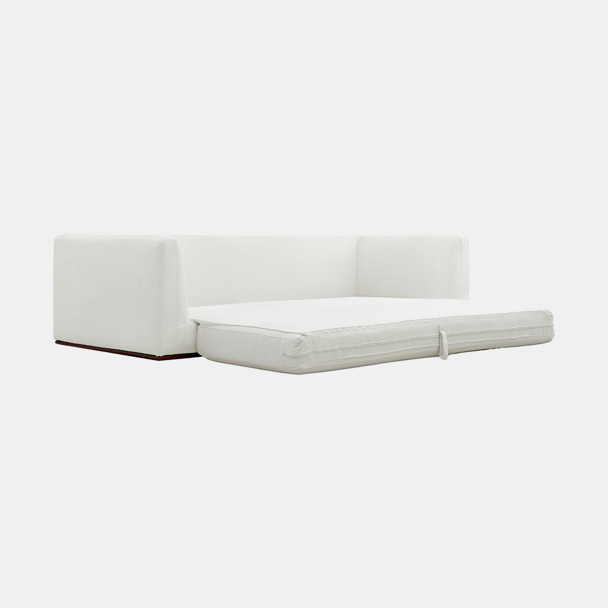 The Roo Sleeper Sofa is the epitome of sophisticated luxury. This chic sofa effortlessly transforms into a comfortable sleeper, offering spaciousness between a double and queen size. Filled with 70% feather fill and featuring a bench seat design, its rubber wood base creates a floating appearance. Elevate your space with this exclusive piece.