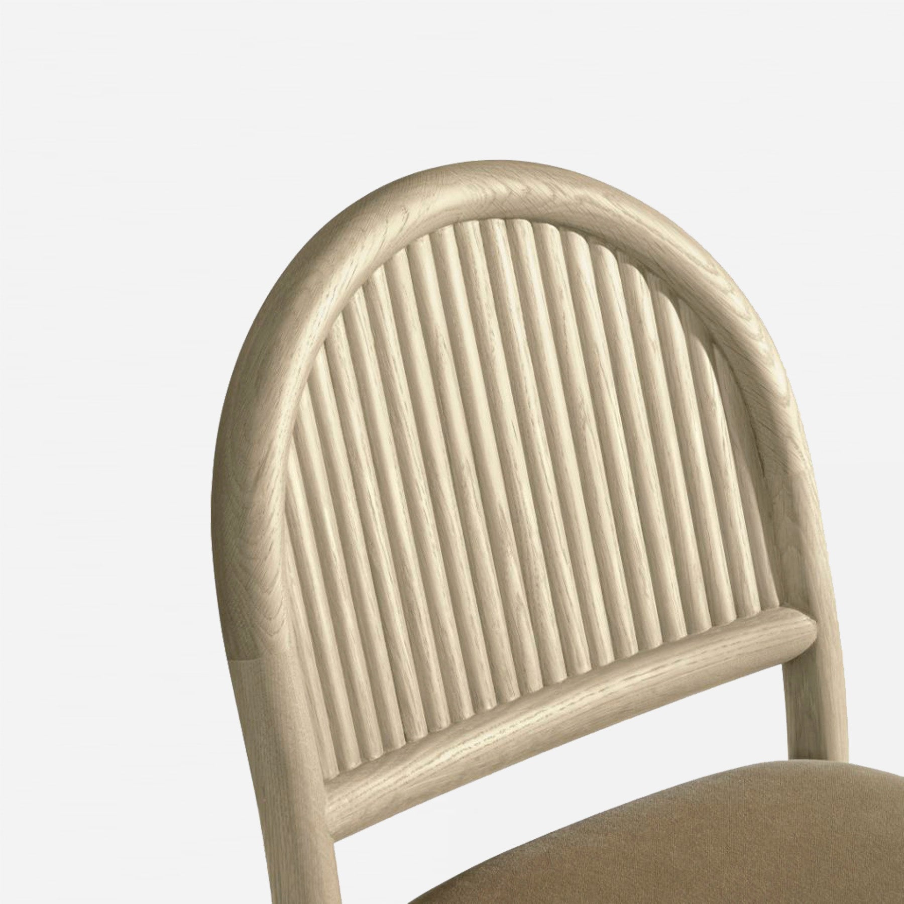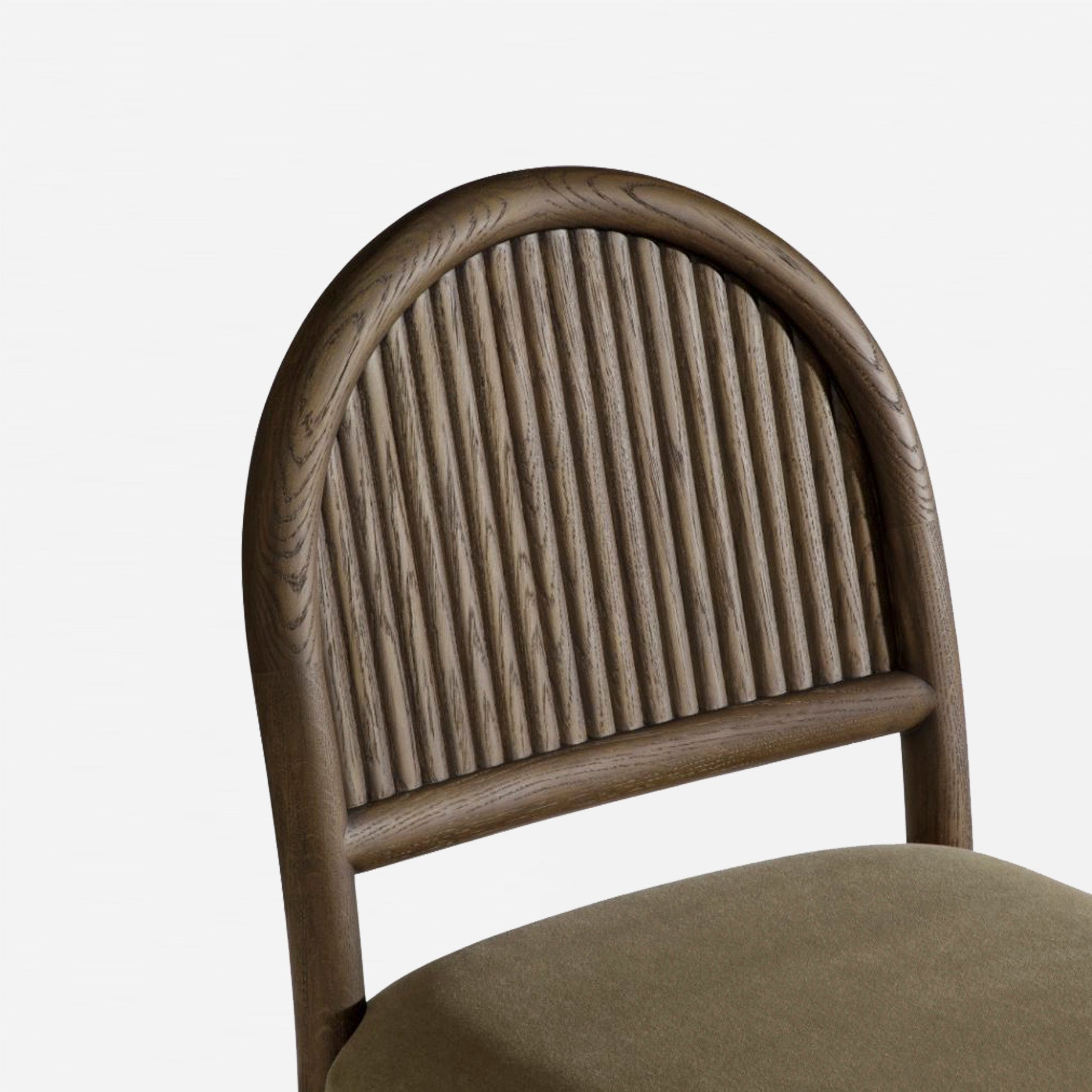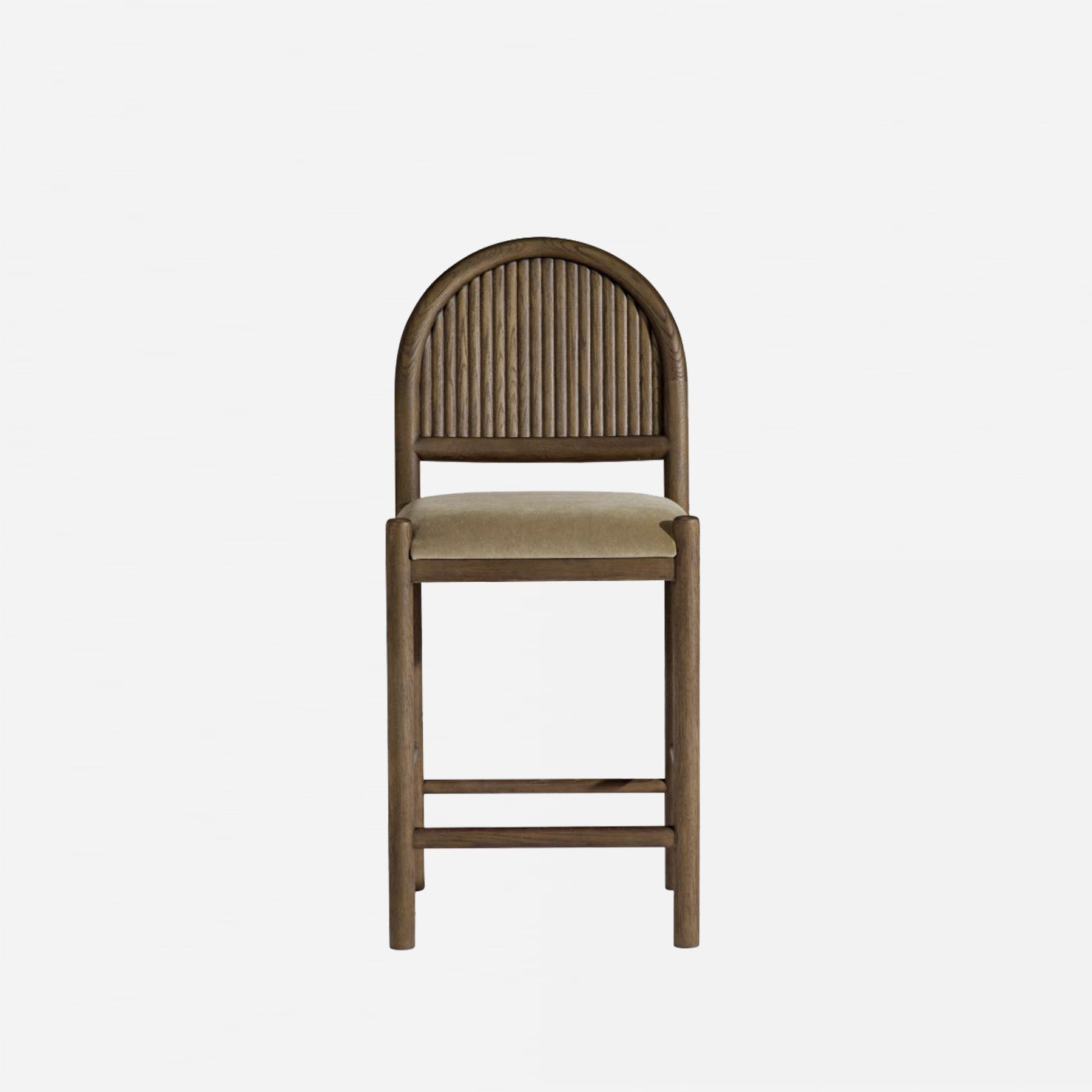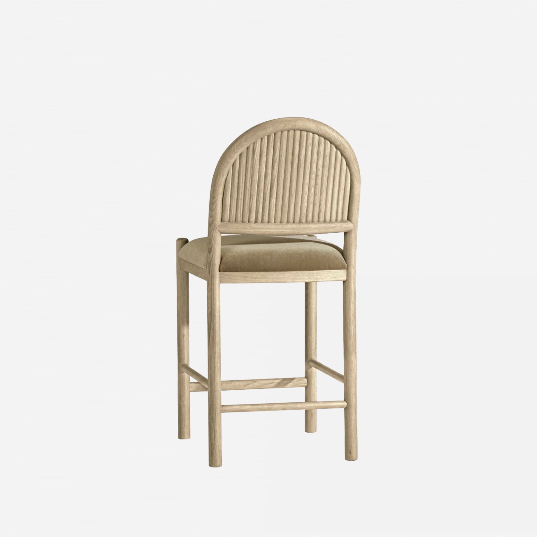 The Selene arched counter stool features a reeded back for elegant texture with a plush velvet seat for comfort and style.