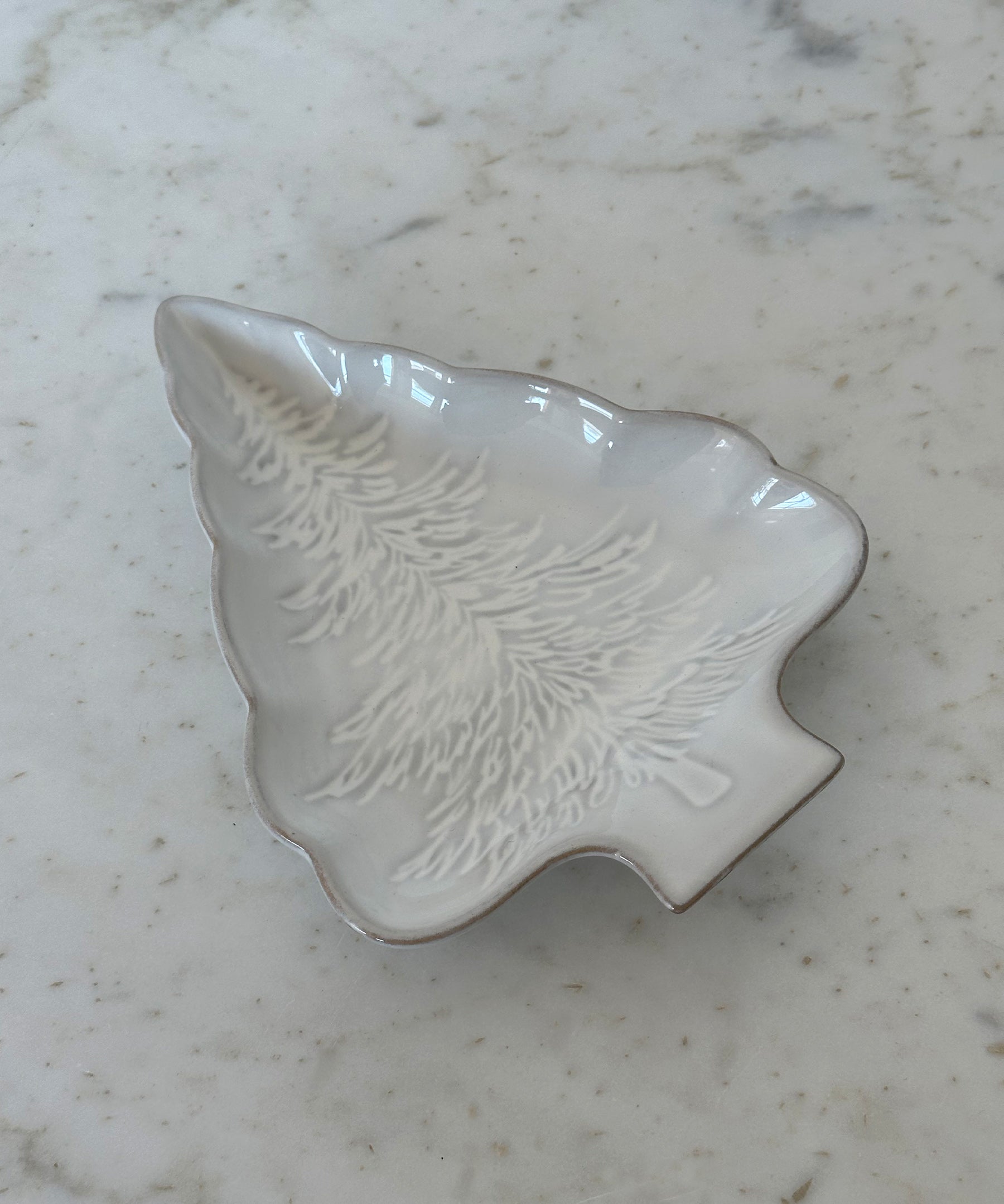 Celebrate the season with this sophisticated stoneware plate, expertly shaped like a tree and featuring an elegant tree design. Its artisanal craftsmanship and timeless style make it perfect for holiday gatherings, adding a subtle festive charm to your table while maintaining refined simplicity. A beautiful way to serve or showcase your seasonal favorites.