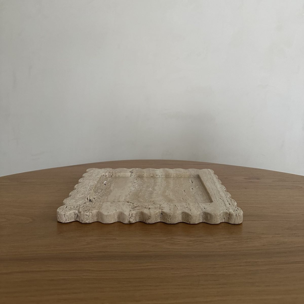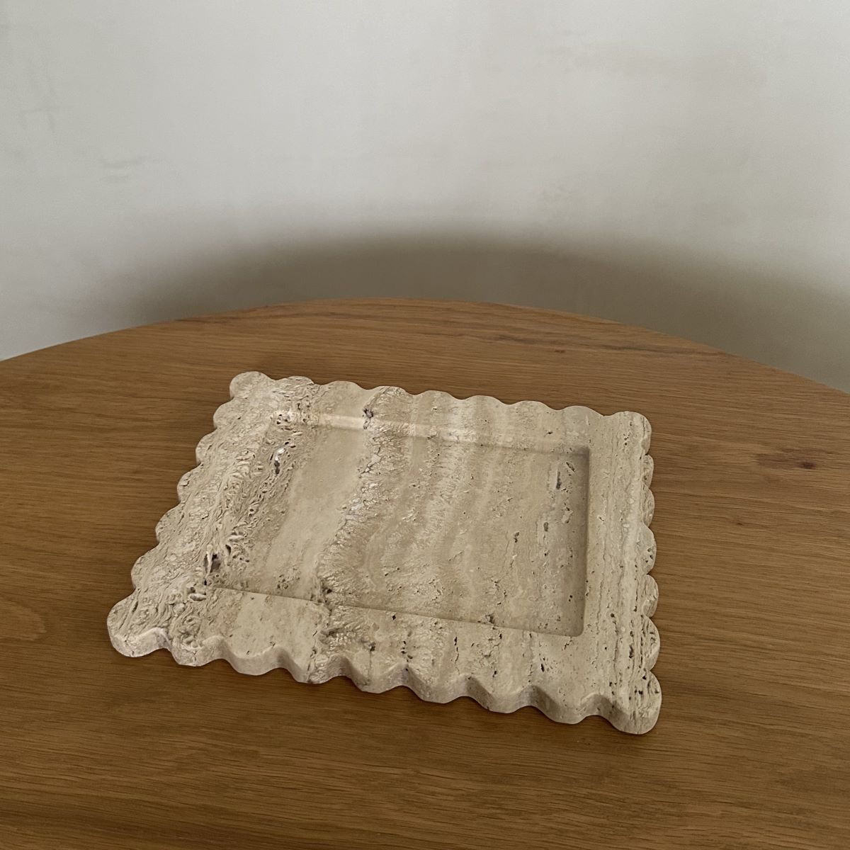 The beautifully crafted Travertine Scalloped Tray is as versatile as it is stylish. Great for holding and displaying your favorite candle or use it as a catchall to corral jewelry. Cut from a single piece of solid stone detailed with elegantly scalloped edges, the Travertine Scalloped Tray is hand-finished by artisans in a growing stone atelier in Rajasthan, India. A limited production, functional object d'art exclusively produced by Anastasio Home.