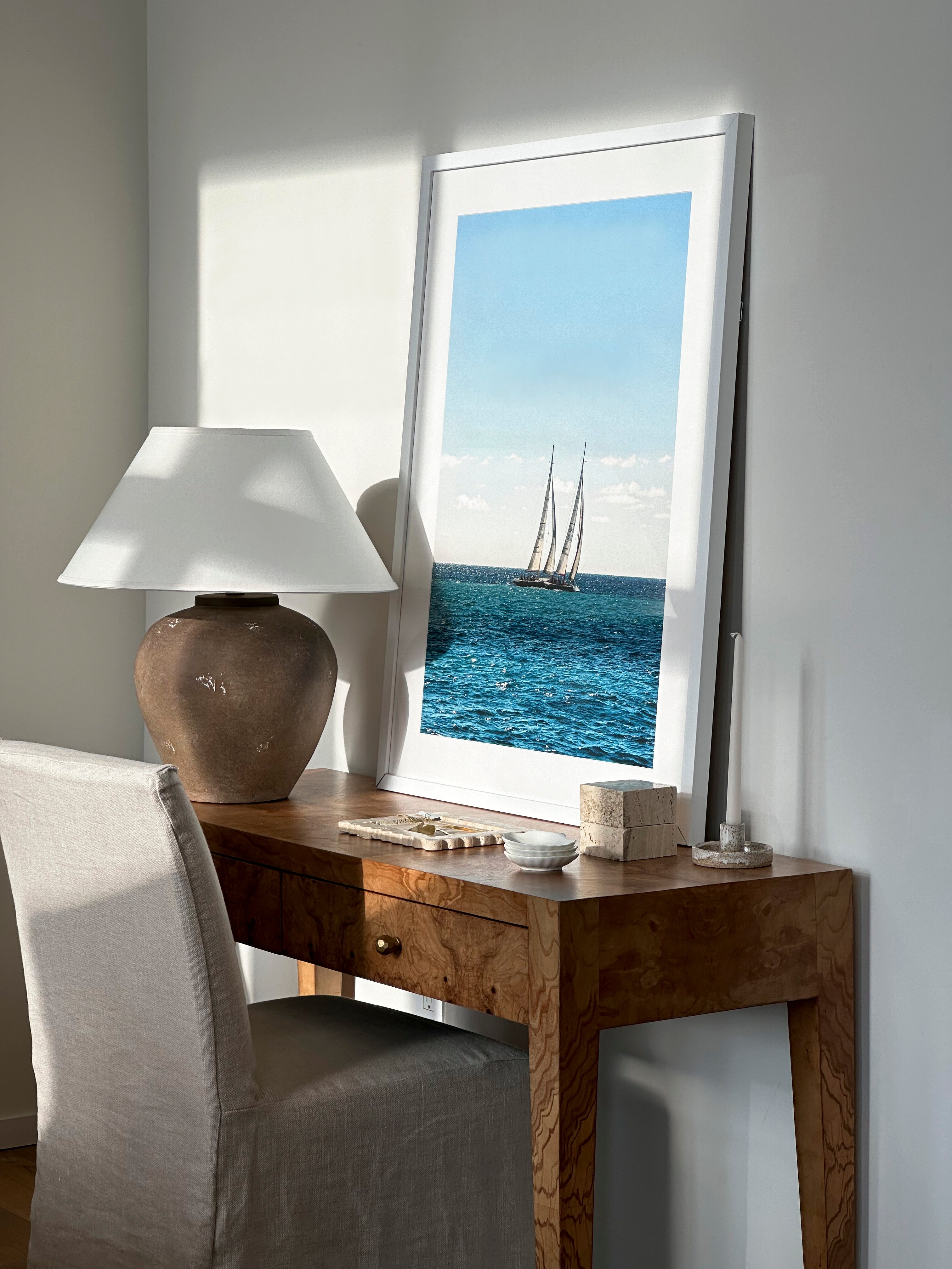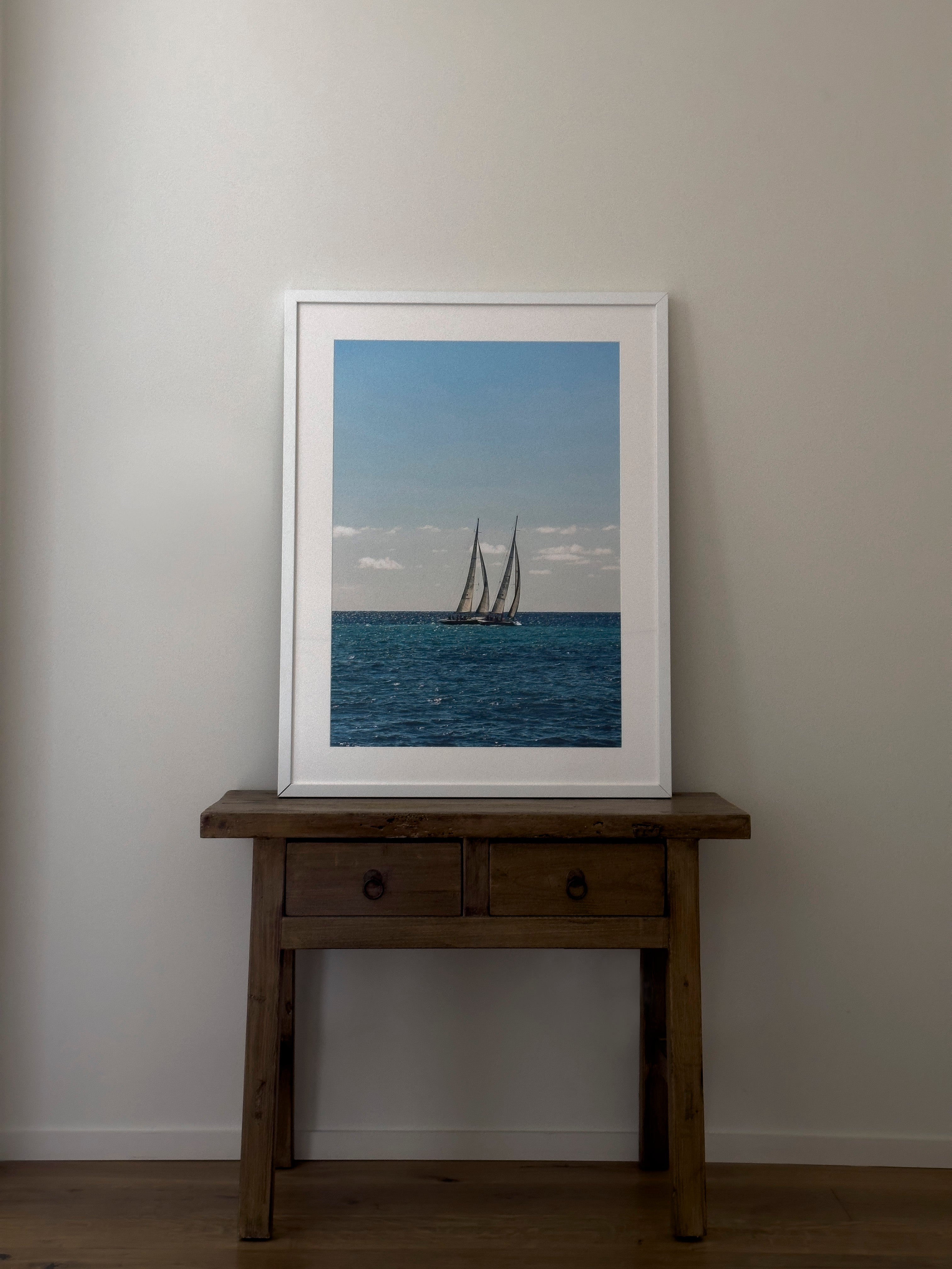 Two sailboats cut through the crystal waters of the Cayman Islands, sails full and straining with the force of the trade wind. Match racers, they duel in silence, powered not by engines but by the raw strength of nature itself. Each shift in wind is met with precision, each wave with purpose. Side by side they glide, equals in skill, rivals in spirit, locked in a fleeting ballet of speed and control.