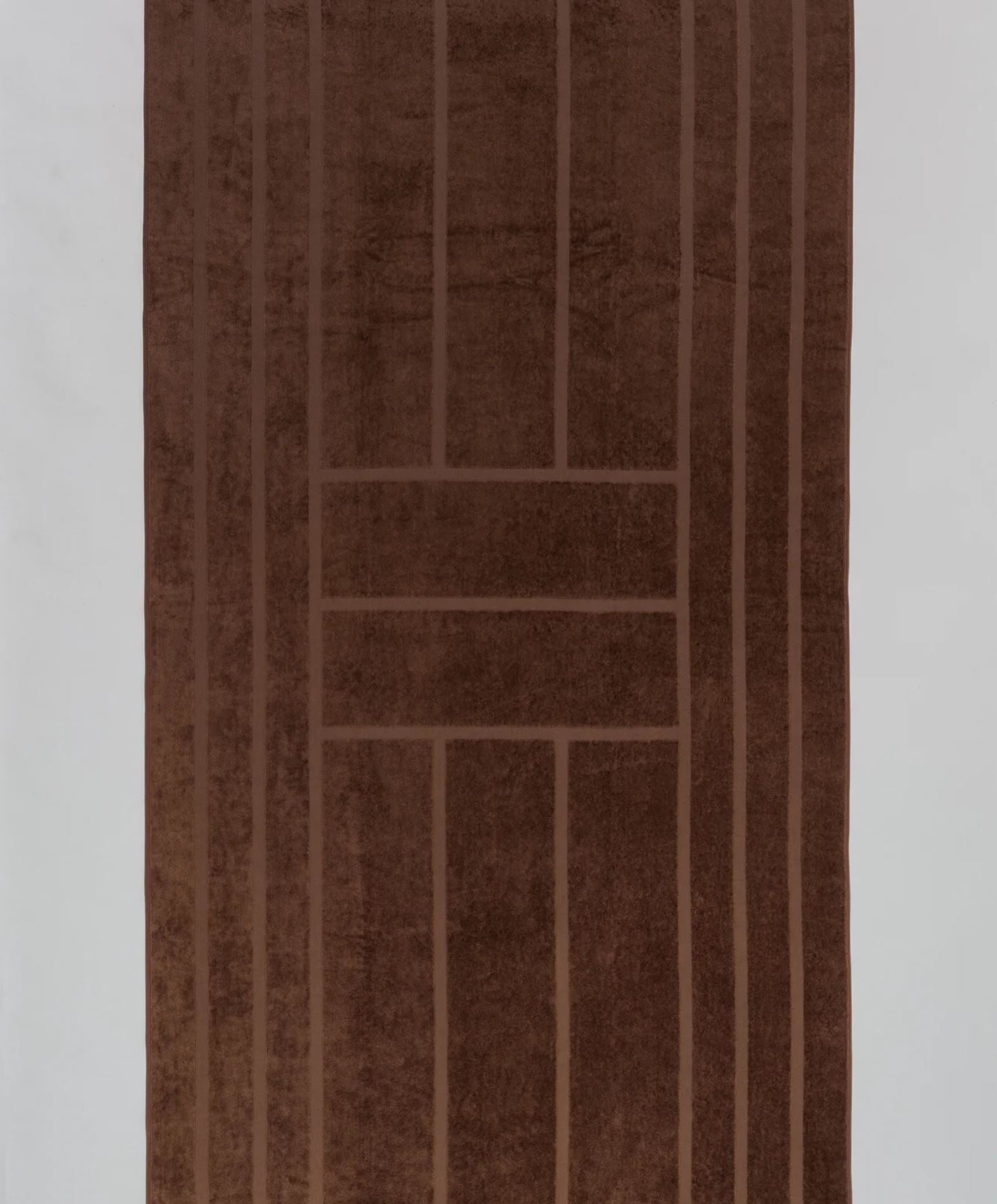 Crafted from 100% organic cotton, the Woodford Towel features a refined jacquard gate motif that echoes the elegant symmetry of contemporary BAINA designs. Its lush cut pile velour enhances the deep shades, evoking a timeless Mediterranean charm reminiscent of the Italian coast in the early 1970s. This towel combines natural quality with understated luxury, making it a sophisticated addition to your bathroom essentials.