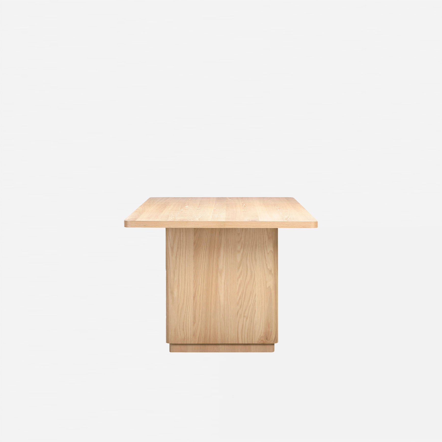 The Zane Dining Table stretches the design with an extended profile and natural oak veneer. Softly rounded corners and visible wood grain give it an inviting, grounded presence, supported by a sturdy rubberwood frame. It's perfect for gatherings, blending subtle elegance with practical strength, dining made effortless, with room for everyone.